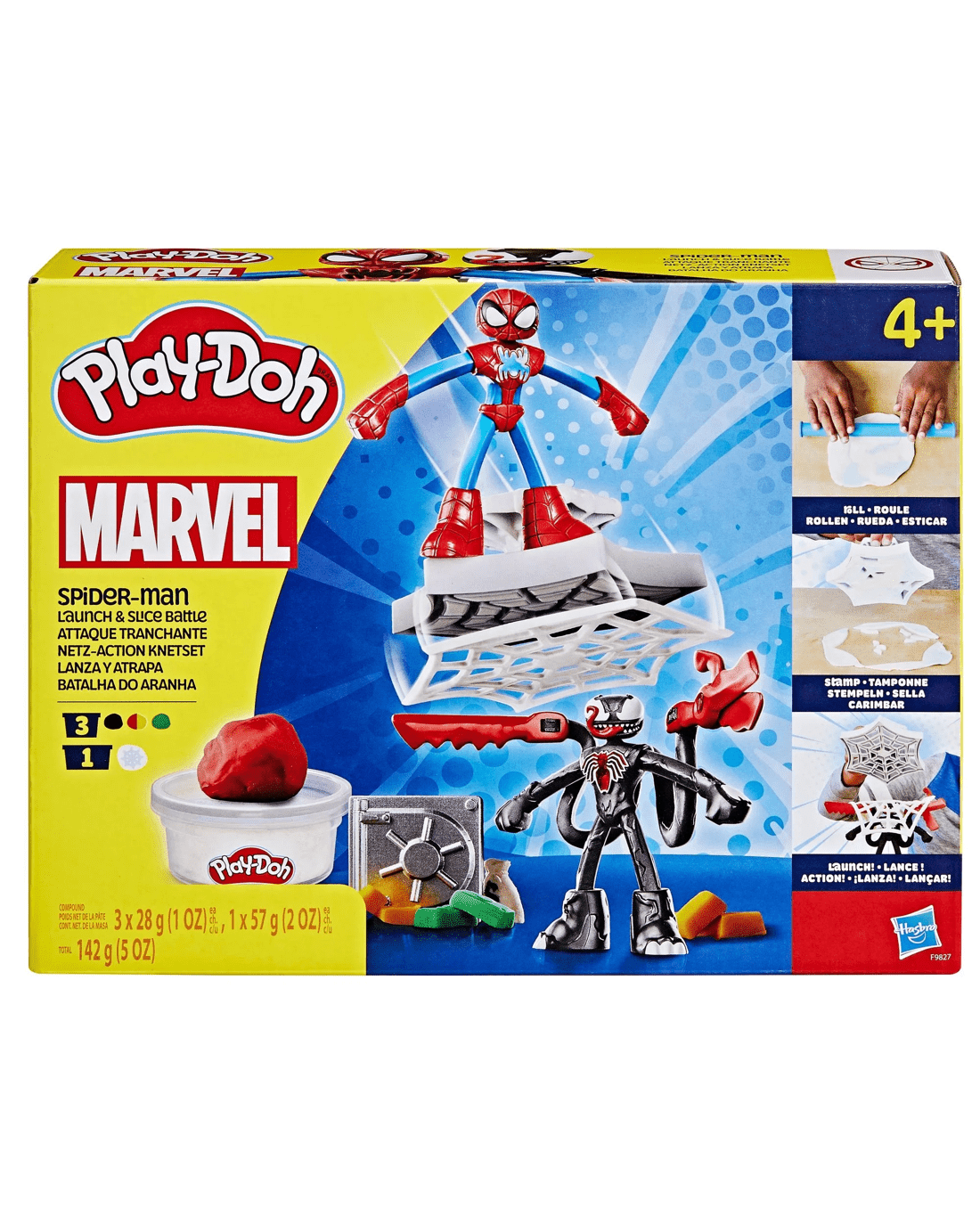 - LAUNCH WEBS: Use the Spider-Man web slinger tool to stamp out a big Play-Doh web, then press the button to launch the web and capture Venom!