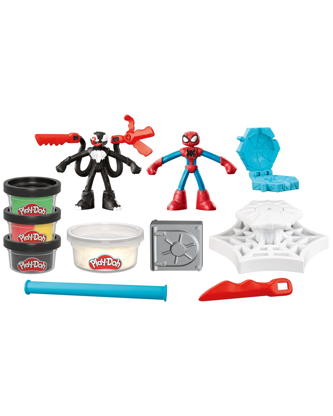 - SPIDER-MAN VS. VENOM PLAYSET: Can Spider-Man stop Venom from pulling off a pretend bank heist? With this Play-Doh Marvel playset, the storytelling power is in kids’ hands!