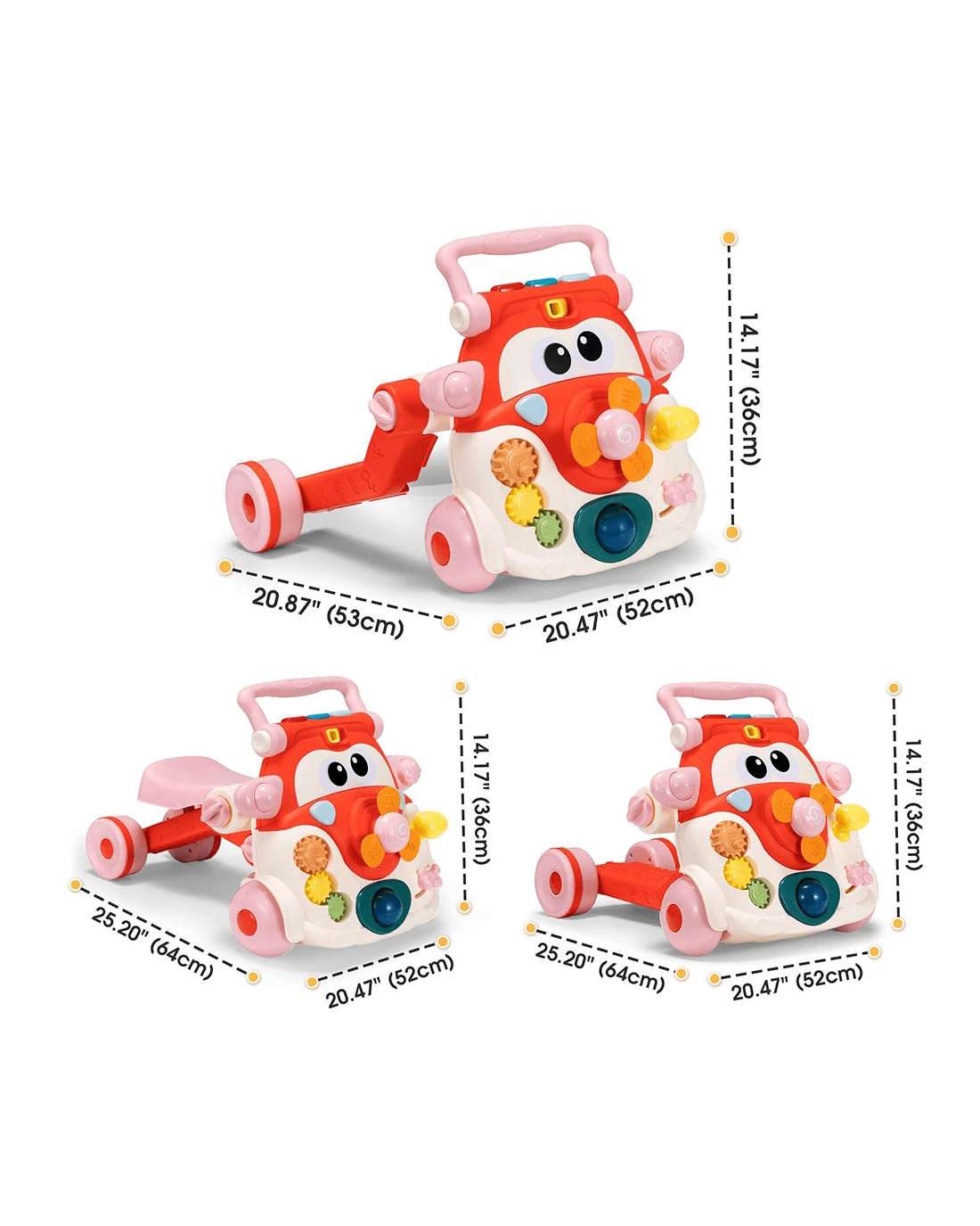 PlayPals 3-in-1 Baby Walker Balancing Cycle Scooter Music Rotating Head - Red