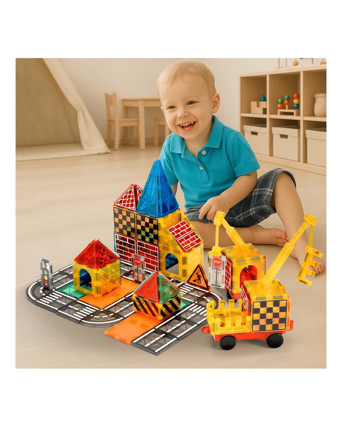 Ever watched your little builder struggle when blocks just won't stay together? Our Playpals magnetic tiles road set with crane makes building strong, easy, and exciting. Kids can create endless cities and road networks—all while sparking creativity, imagination, and STEM skills. Perfect for young builders ages 3+. With magnetic tiles that snap together firmly, kids can design tall buildings, winding roads, and active construction zones without worrying about creations falling apart. The extendable, rotating crane adds a real-world touch, letting them lift and position pieces like true engineers at work. More than just play鈥?it's a hands-on learning adventure that develops spatial awareness, fine motor skills, problem-solving, and cognitive thinking. And with the included traffic lights and warning signs, kids learn about road safety through play. Made from non-toxic ABS plastic and tested to meet CPC and AS/NZS ISO 8124 standards, it's safe, durable, and ready for big imaginations.