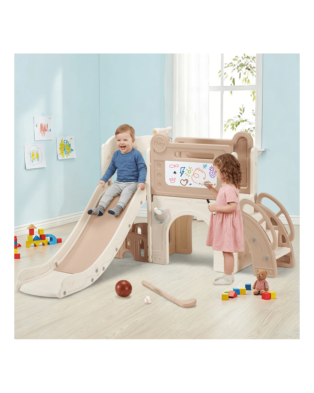 PlayPals 9-in-1 Kids Slide Set Sport and Art Indoor Outdoor Toddlers Play Set - Multi