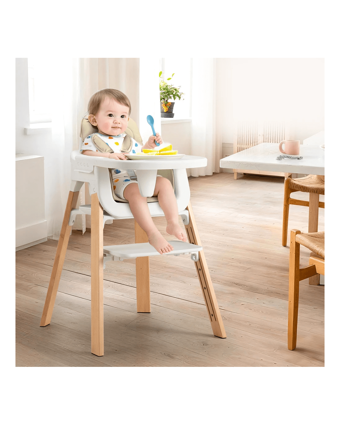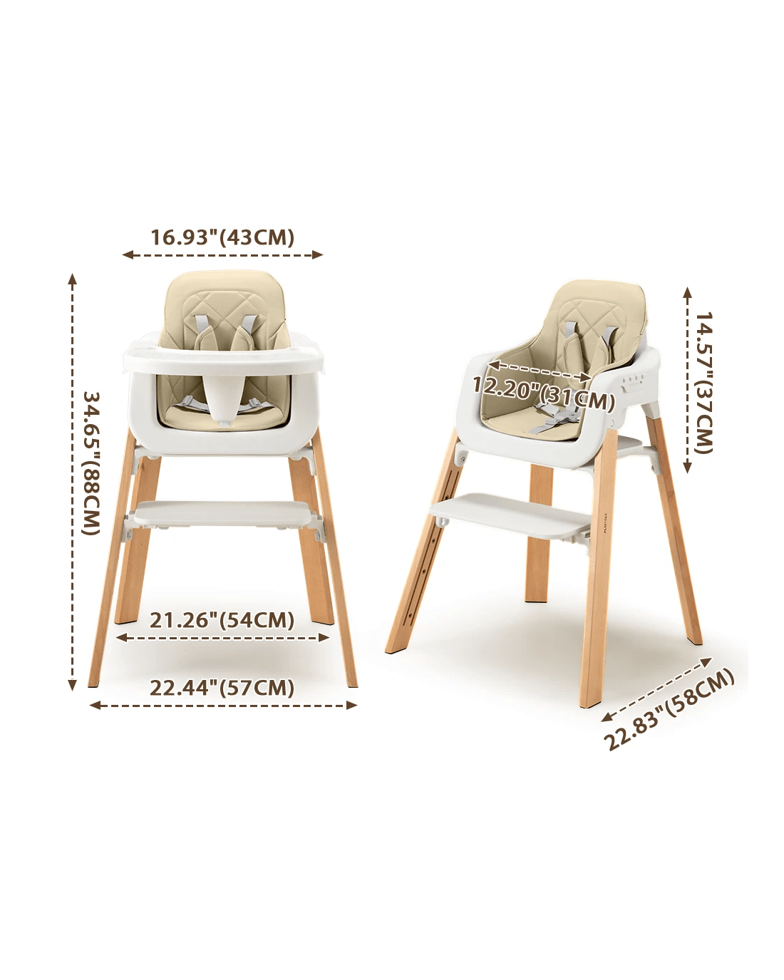 PlayPals Baby High Chair 3-In-1 Feeding Seat Adjustable Tray and Footrest - Beige