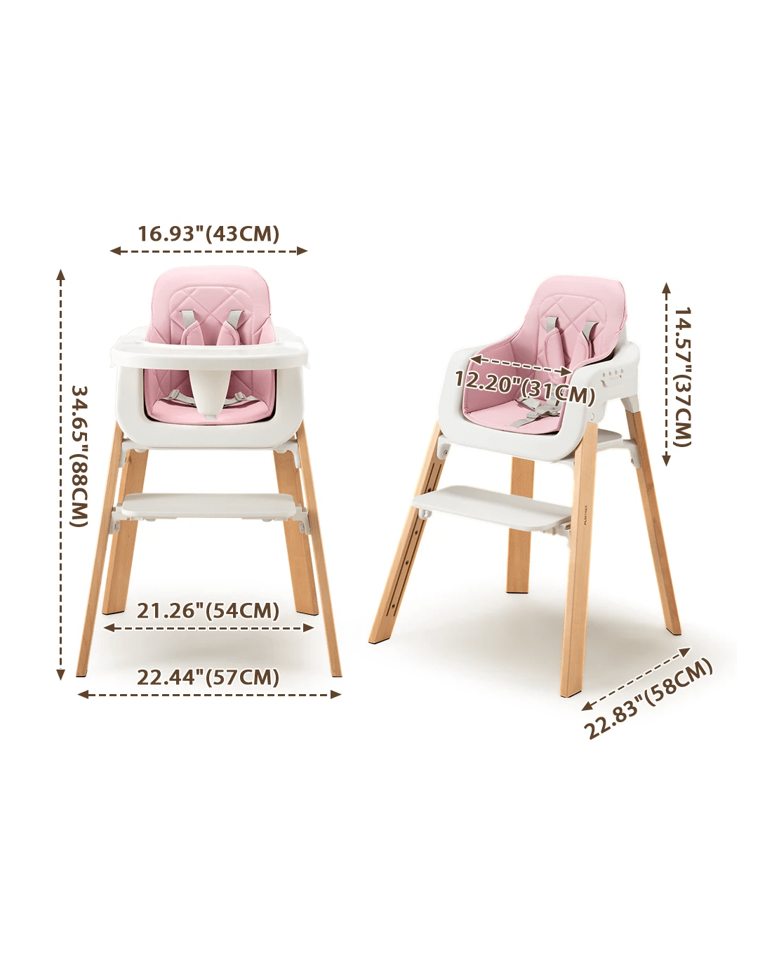 PlayPals Baby High Chair 3-In-1 Feeding Seat Adjustable Tray and Footrest - Pink