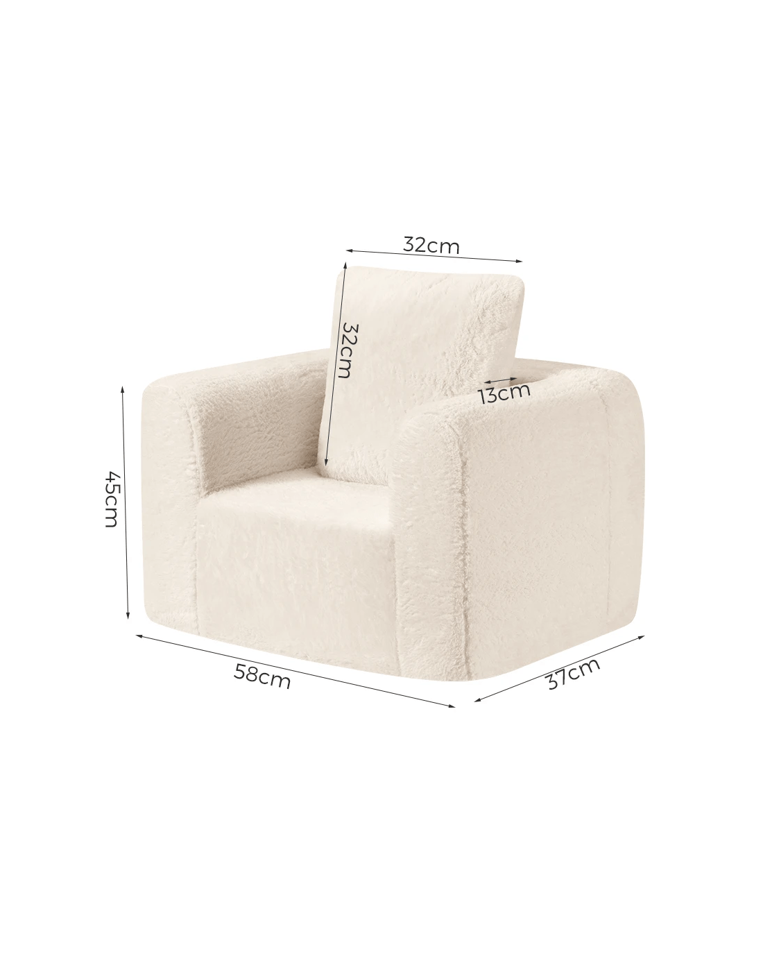 Whether it is storytime, cartoons, or snack time, every child deserves a spot made just for them. The Playpals kids sofa delivers that comfort in one snug, welcoming seat. With its soft touch, plush cushions, and a matching pillow, it is the perfect place for your little one to settle in, sit back, and happily unwind. Made with ultra-soft plush fabric, this kids sofa feels like a gentle hug and stays kind to delicate skin. Beneath the plush cover, high-density foam provides soft yet sturdy support, keeping its shape through every sit, climb, or playful jump. A non-slip bottom prevents sliding, keeping it steady on the floor, while a side pocket keeps favourite toys and books close by. EN71 and CPC certified with no sharp corners or hard edges, it is built for safe, worry-free play. And when messes appear? Simply unzip the cover, toss it in the wash, and it is fresh again in no time. Lightweight and fitted with a convenient handle, kids can easily move their cosy seat wherever they go.
