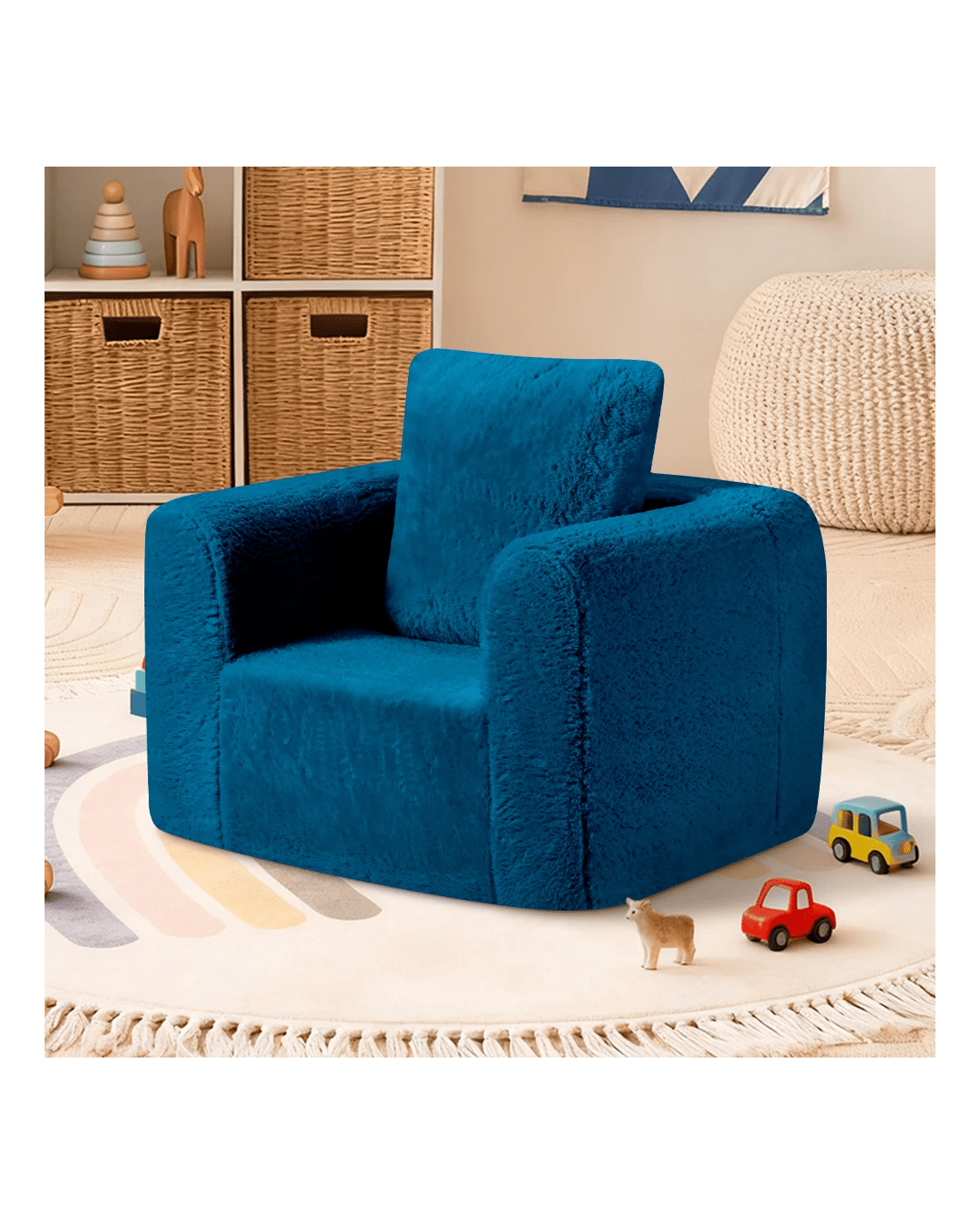 Whether it is storytime, cartoons, or snack time, every child deserves a spot made just for them. The Playpals kids sofa delivers that comfort in one snug, welcoming seat. With its soft touch, plush cushions, and a matching pillow, it is the perfect place for your little one to settle in, sit back, and happily unwind. Made with ultra-soft plush fabric, this kids sofa feels like a gentle hug and stays kind to delicate skin. Beneath the plush cover, high-density foam provides soft yet sturdy support, keeping its shape through every sit, climb, or playful jump. A non-slip bottom prevents sliding, keeping it steady on the floor, while a side pocket keeps favourite toys and books close by. EN71 and CPC certified with no sharp corners or hard edges, it is built for safe, worry-free play. And when messes appear? Simply unzip the cover, toss it in the wash, and it is fresh again in no time. Lightweight and fitted with a convenient handle, kids can easily move their cosy seat wherever they go.
