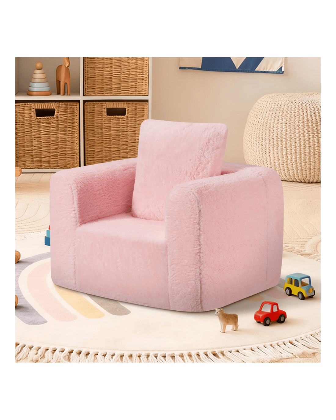 Playpals Kid Sofa Lounge Couch with Pillow High Back Toddler Chair - Pink