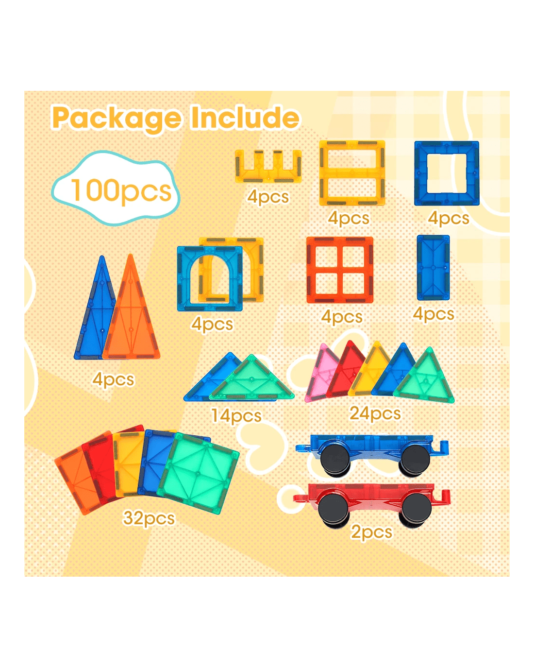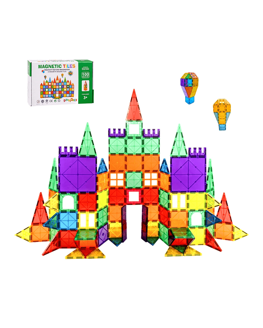 Experience the magic of our magnetic tiles as your kids unleash their creativity, crafting impressive 2D and 3D masterpieces. Our magnetic blocks turn your kids into imaginative builders ready to bring their visions to life. When sunlight dances through, the tiles cast captivating shadows for added enchantment. With Playpals magnetic tiles, kids can have fun building various creations like buildings, vehicles, and windmills. They can add more tiles to enhance their designs, exploring concepts of engineering while learning about structure. Using our kids magnetic tiles also helps kids get better at hand eye coordination. When they play with others, they develop social skills, communication, and teamwork. The integrated strong magnets ensure that your kids' creations securely hold together. Non-toxic ABS material ensures a safe play experience, free from BPA and phthalates. Designed with smooth edges, our magnetic tiles prioritize safety, protecting the little fingers of young builders.