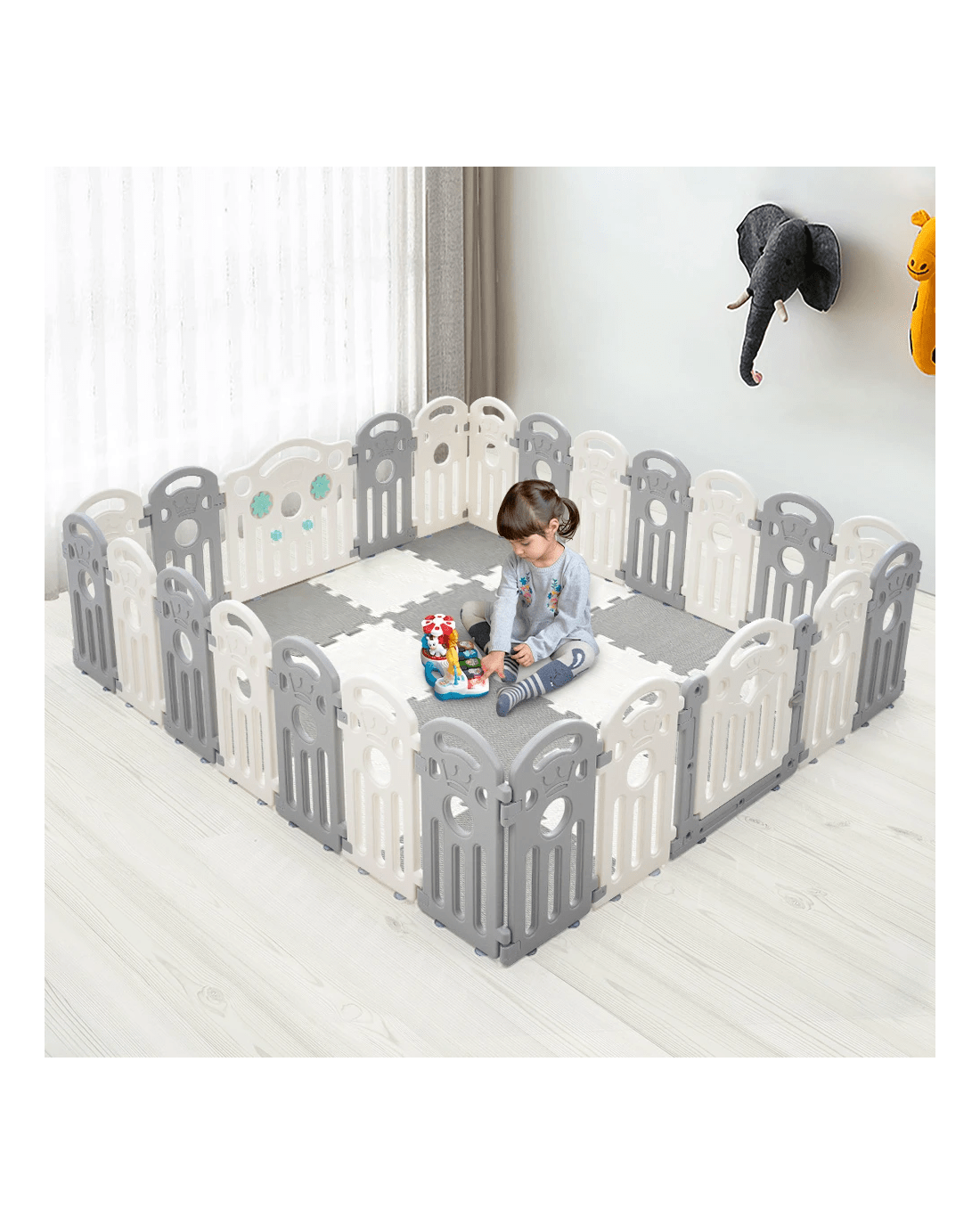 Playpals Kids Playpen Baby Safety Gate Toddler Fence Child Play Game 24 Panels - Multi
