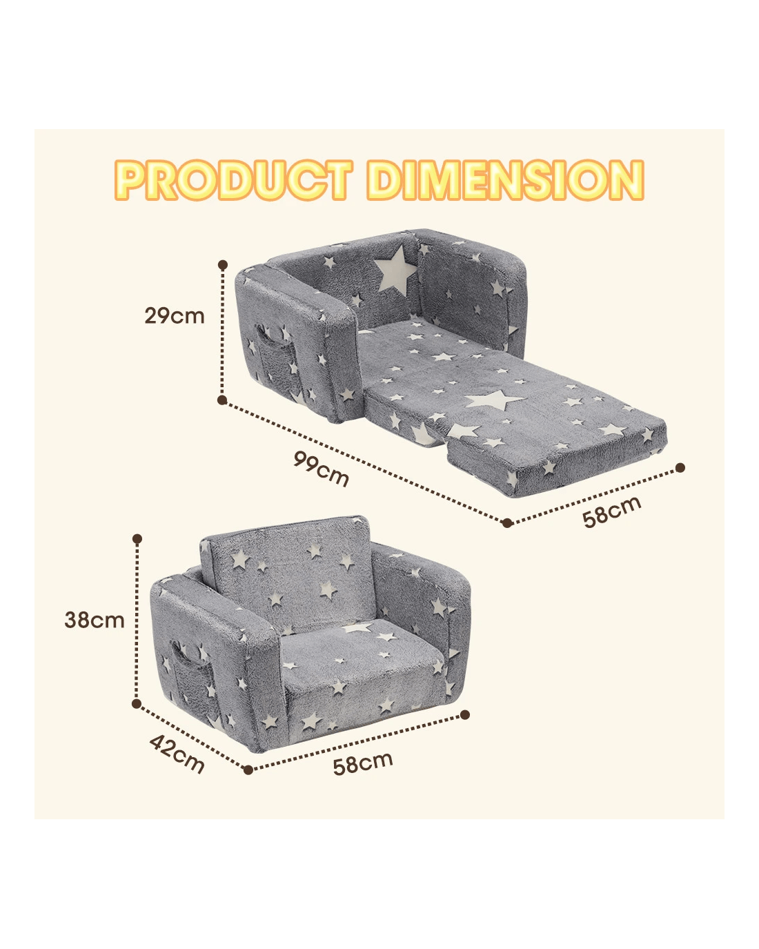 Playpals Kids Sofa Convertible Couch Fold Out Play Couch Toddler Sofa Grey - Grey