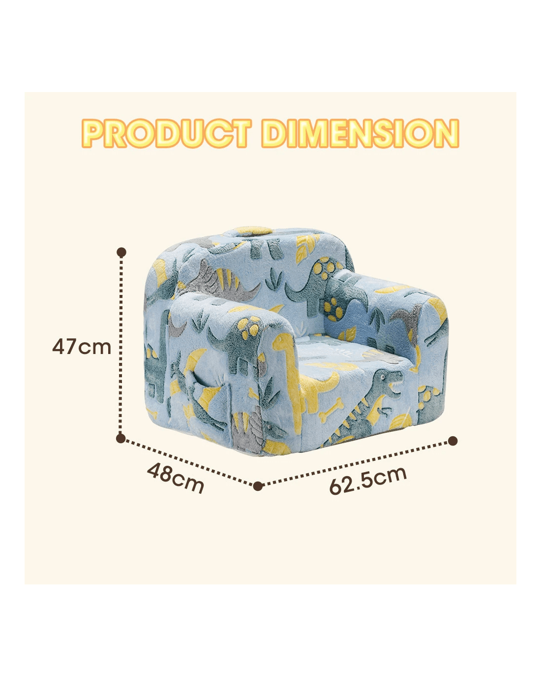 Whether it's storytime, cartoons, or snack time, every little one deserves a spot that's just right-a cozy space for all-day comfort and fun. The Playpals kid sofa is built for exactly that! With its soft touch, plush cushions, and playful design, it's the perfect addition to any room, where playtime meets relaxation. Crafted with soft, plush flannel fabric, our kid sofa is as cozy as a cuddle and gentle on little ones'sensitive skin. Inside, high-elastic foam provides lasting support, holding its shape through all the bouncing, lounging, and sprawling. With smooth surfaces and rounded edges, it's designed for worry-free play-safe, comfy, and fun all day long. And when spills or crumbs make an appearance? No problem! Simply unzip the cover, toss it in the wash, and it's fresh and ready for more adventures. Lightweight and compact with a handy handle, your little one can easily move it wherever they want. Plus, the non-slip bottom keeps it in place while they relax and unwind.