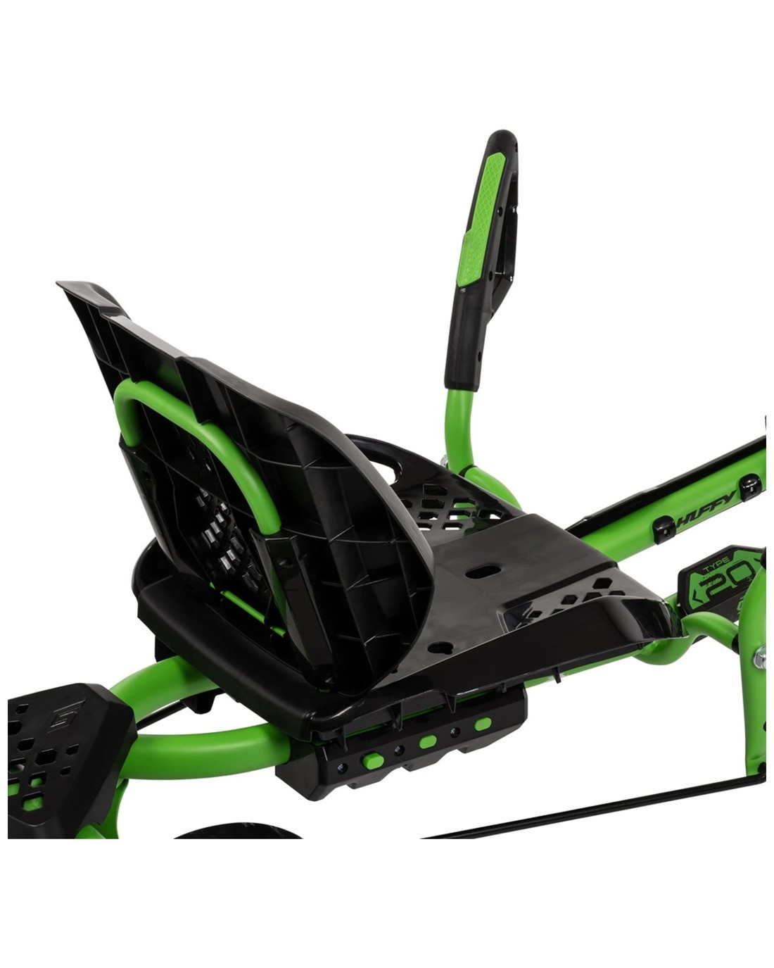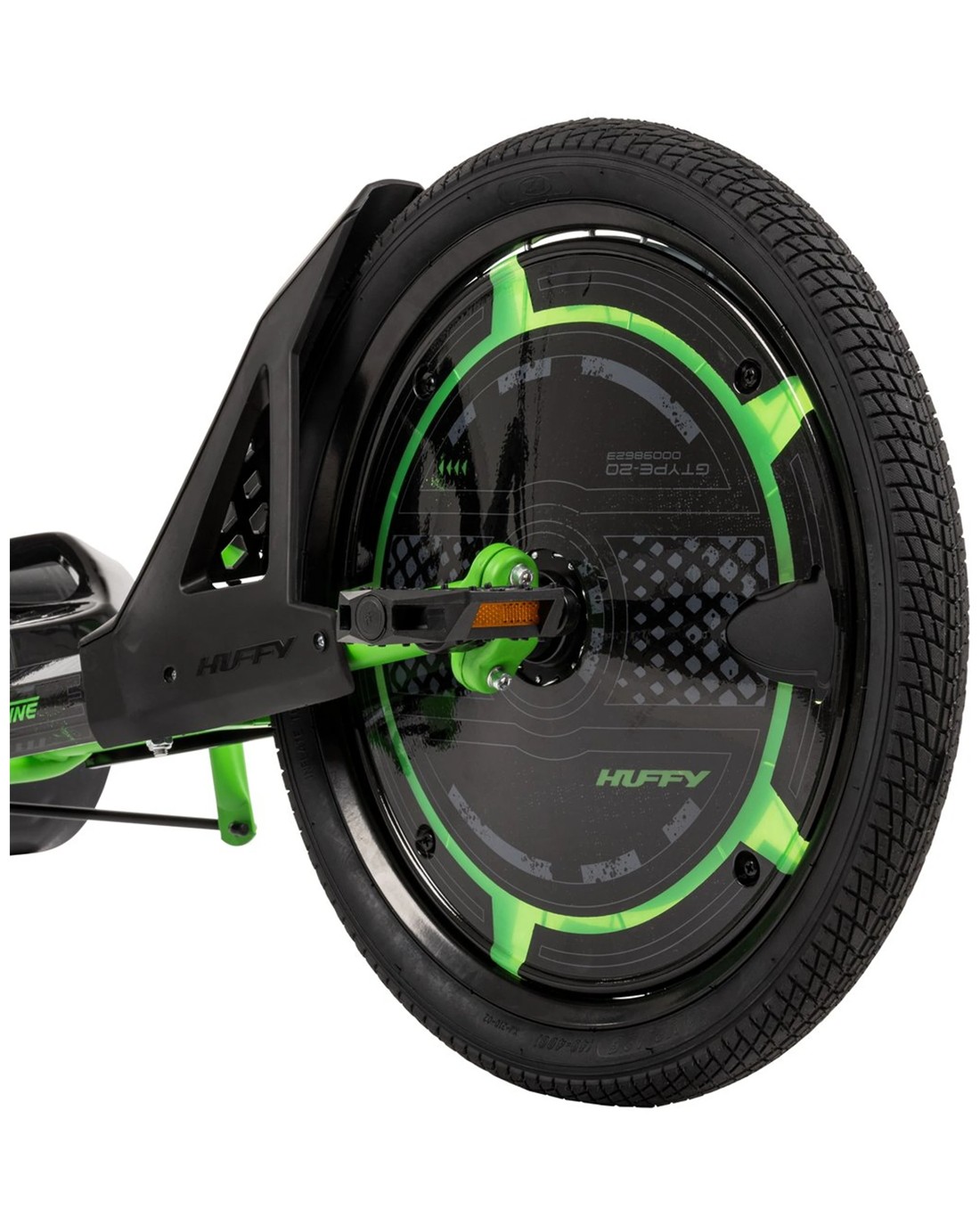 The Green Machine drift trike features an all-new steel frame finished in vibrant green, with LED lights beneath the seat and in the rear wheels for enhanced visibility and appeal. Engage the dual steering rods and coaster brake for dynamic 180-degree drifts, spins, and slides, making every ride exhilarating. The redesigned ergonomic saddle allows kids to lean into turns comfortably, ensuring an enjoyable experience without sacrificing comfort. The injection-moulded rear wheels provide increased durability, stability, and sliding power for reliable outdoor adventures.