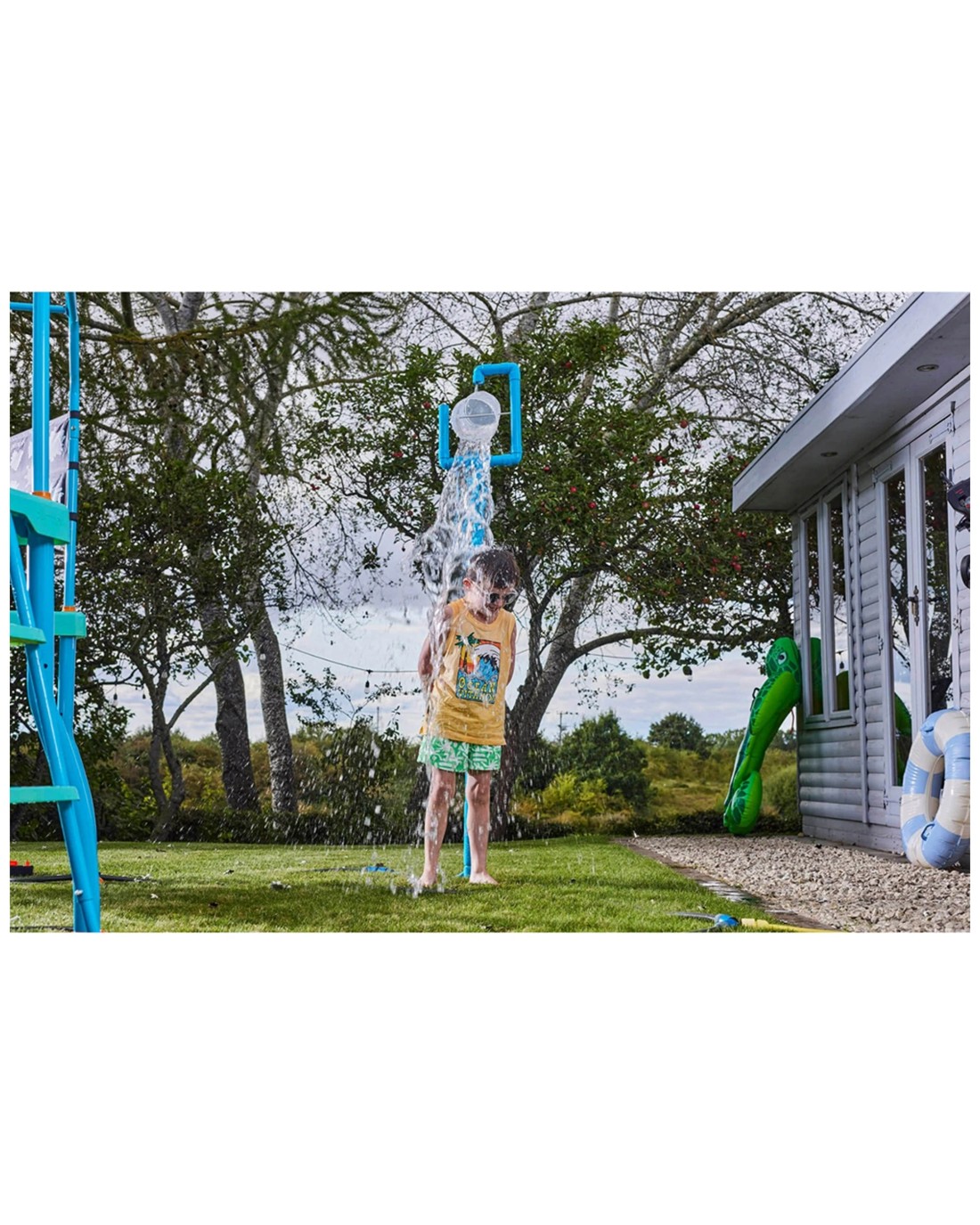 This water play structure features a water flow system with a pipe and circular container that encourages dynamic and fun water activities. Children can enjoy hours of active outdoor entertainment with this colourful and easy-to-use water toy.