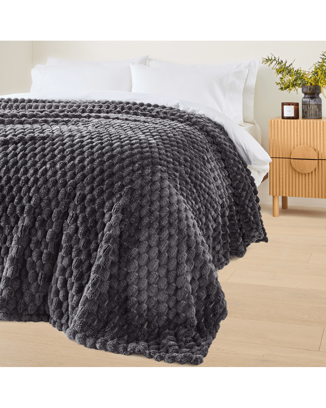 Soft, warm, and effortlessly stylish - this Plush Jacquard Blanket adds comfort to any bed or sofa.