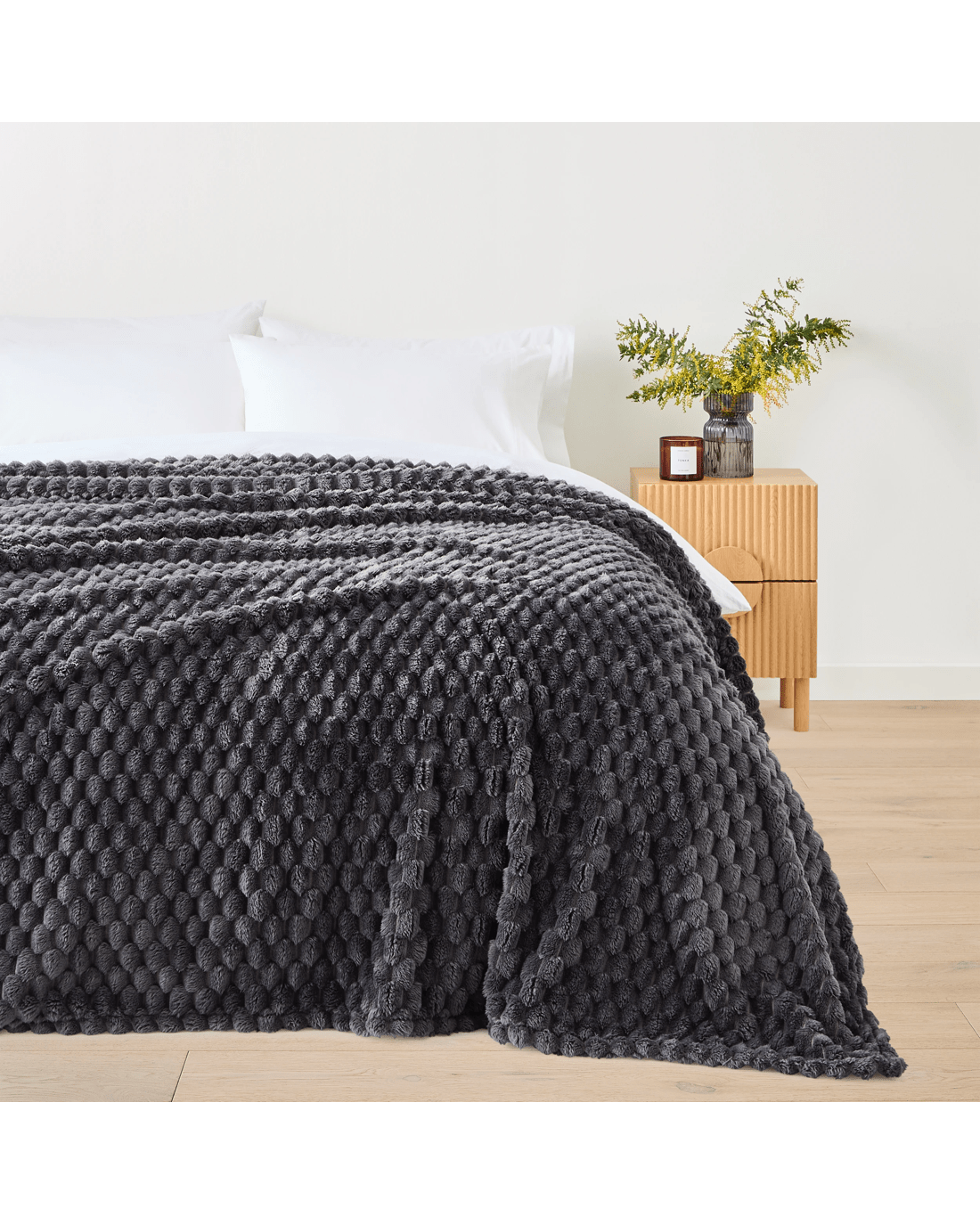 Soft, warm, and effortlessly stylish - this Plush Jacquard Blanket adds comfort to any bed or sofa.