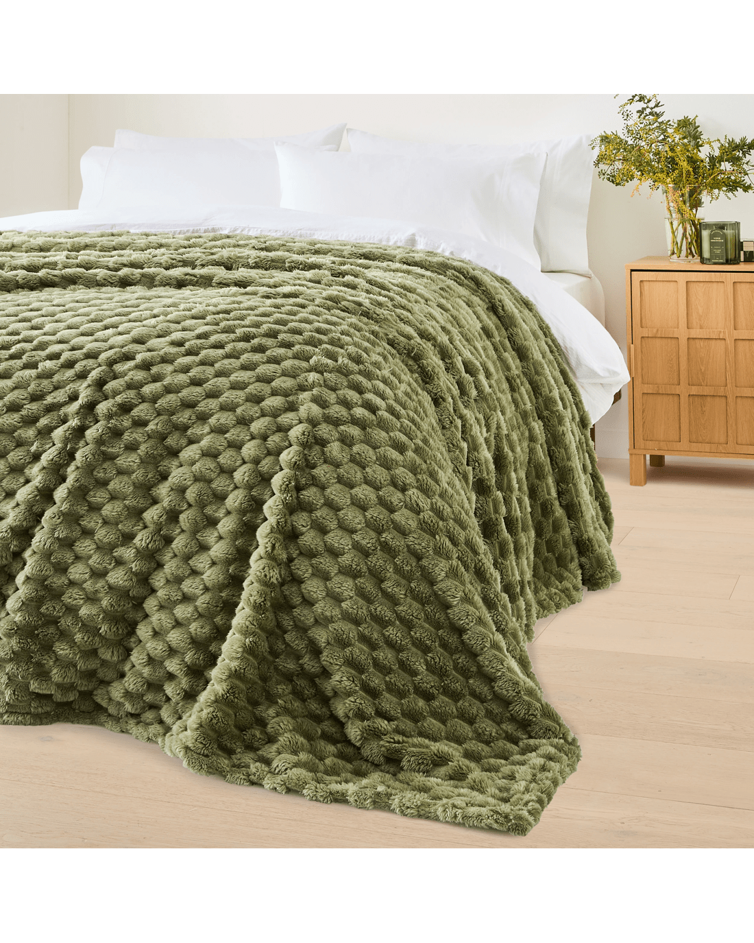 Plush Jacquard Blanket - Queen/King Bed, Green