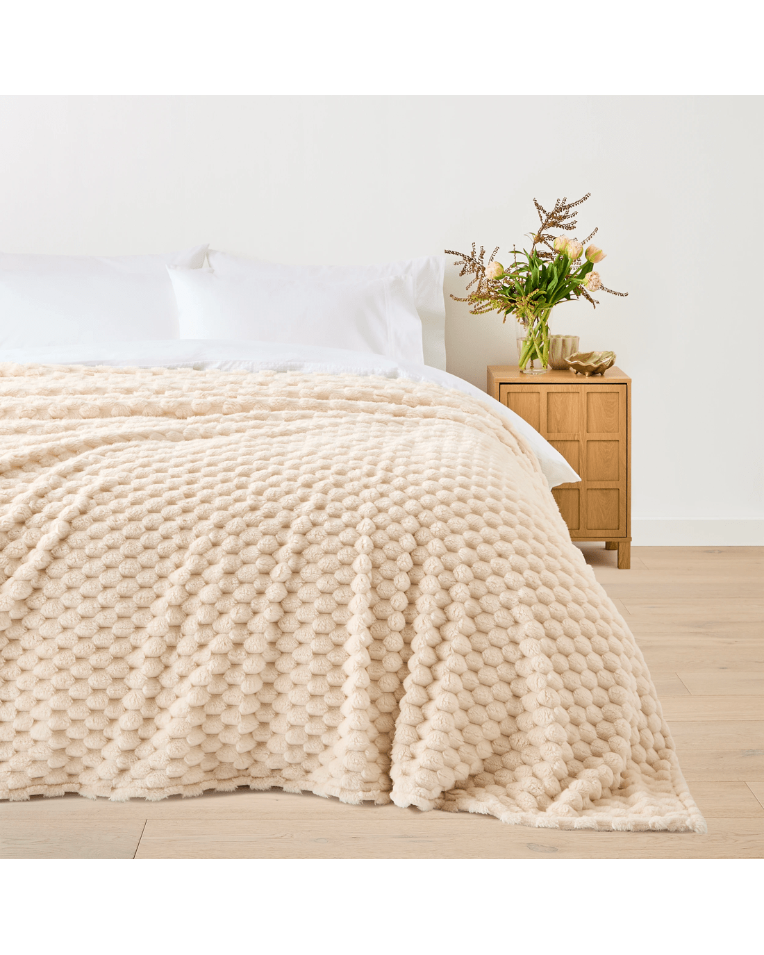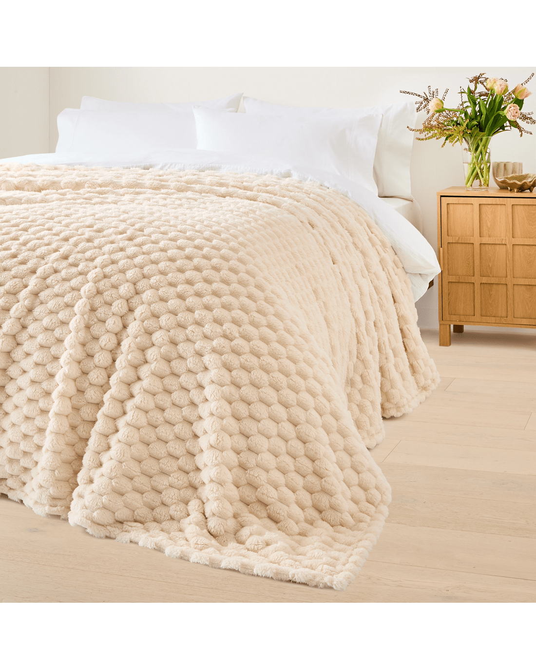 Soft, warm, and effortlessly stylish - this Plush Jacquard Blanket adds comfort to any bed or sofa.