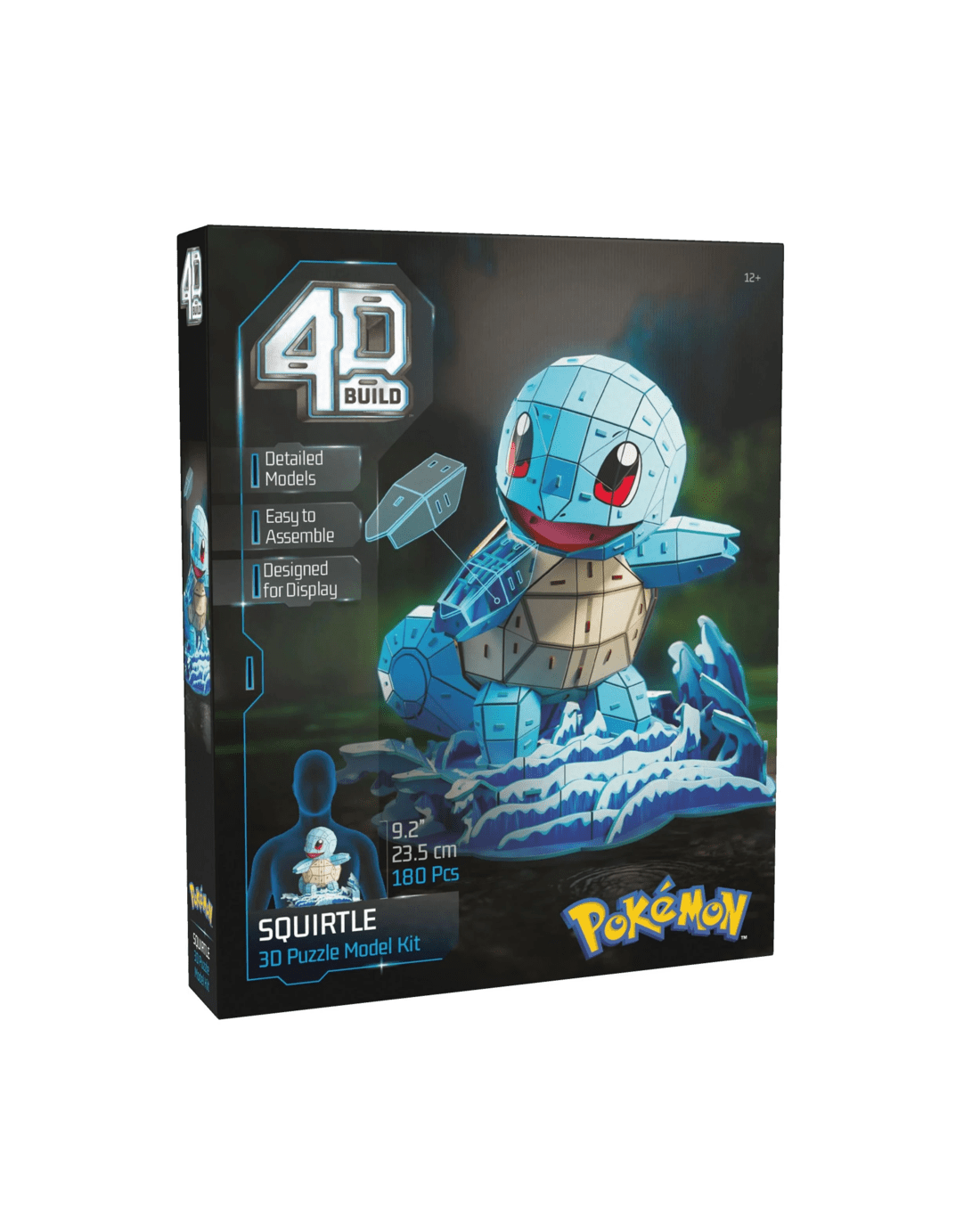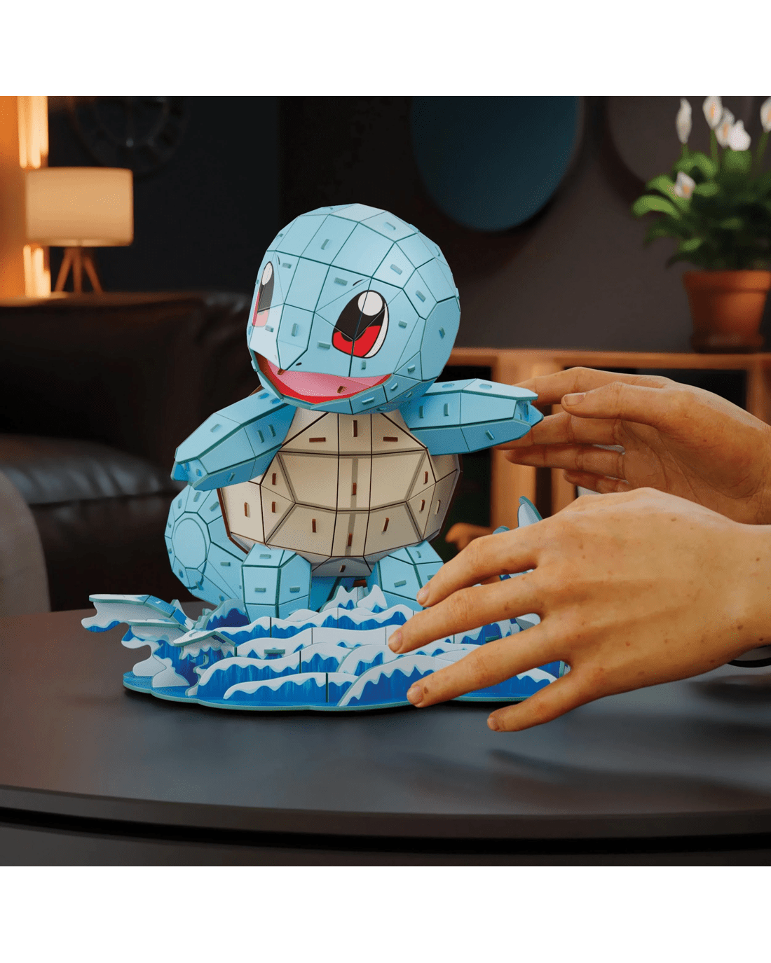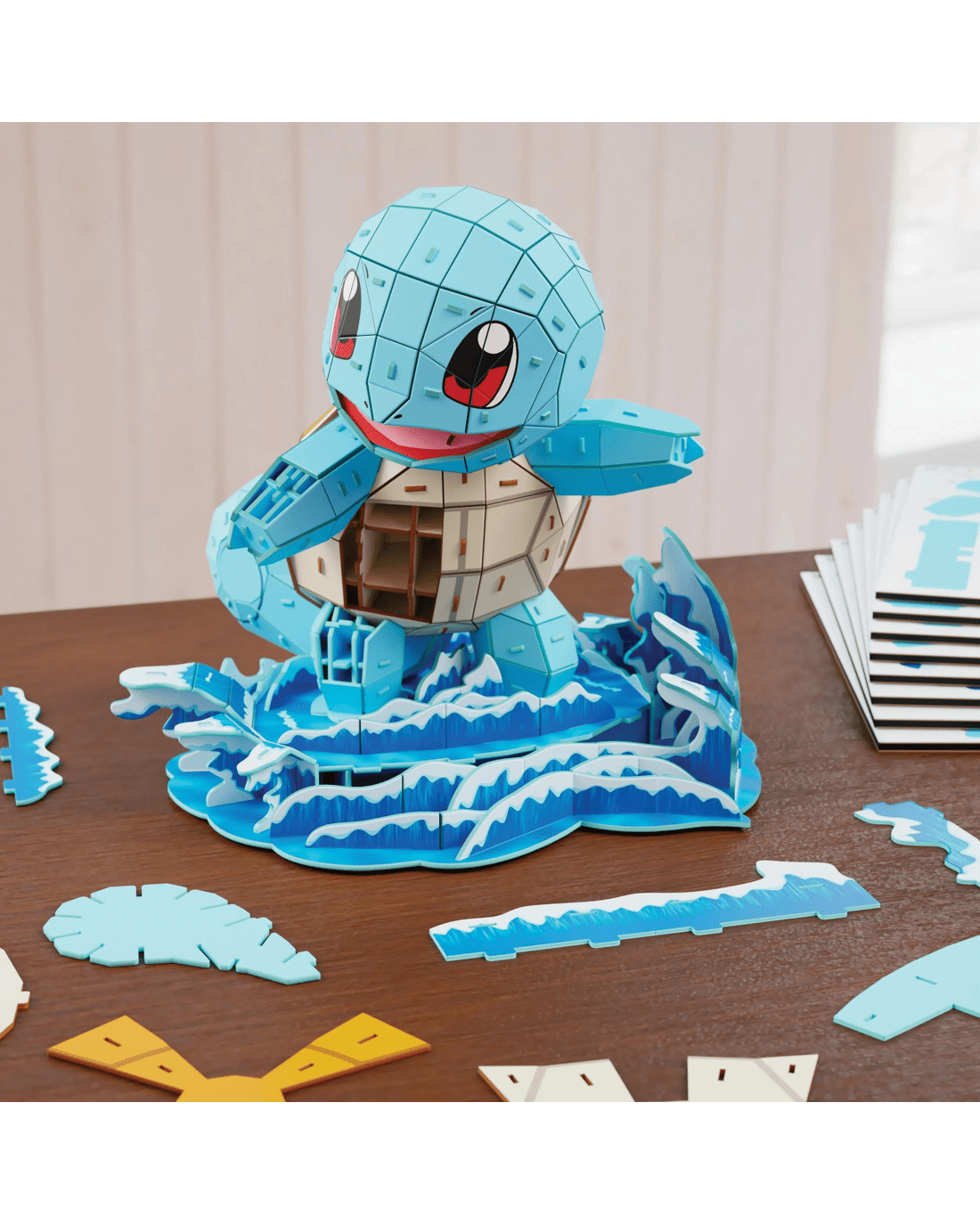 - Detailed replica: Go on a Pokemon building adventure with your best friend at your side with this 4D Build Squirtle 3D puzzle, featuring the original water-type starter from Kanto catching some waves.