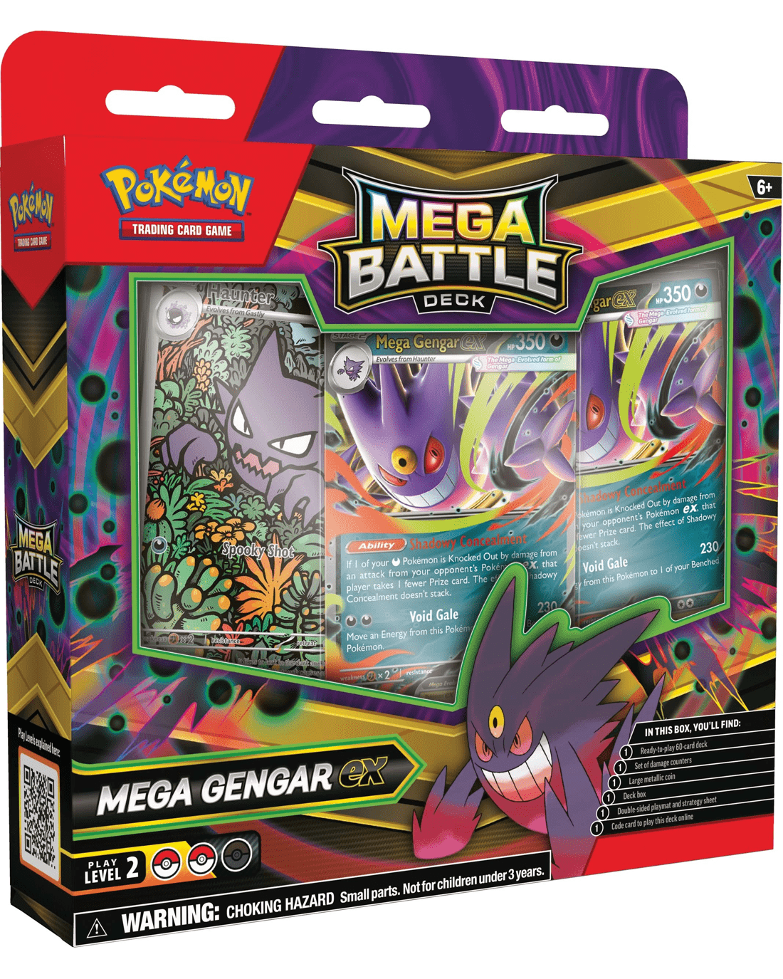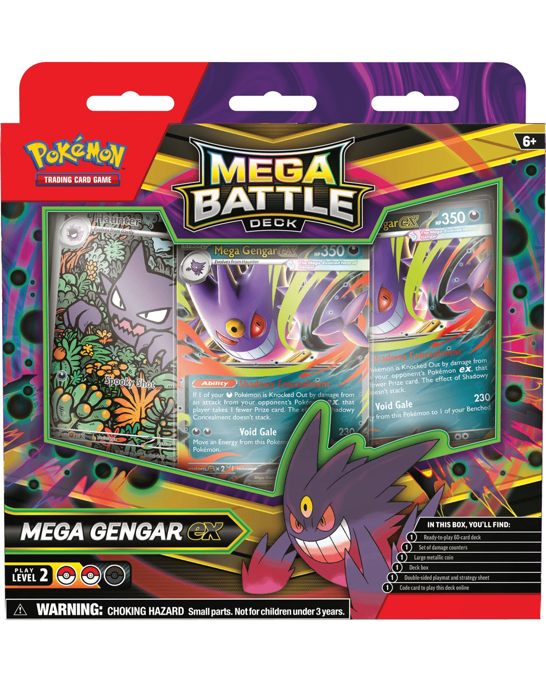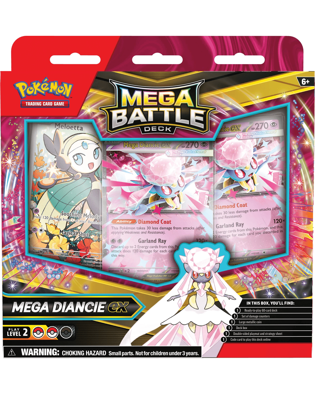 Two new Pokemon TCG: Mega Battle Decks are ready to rumble! Team up with Mega Gengar ex and battle from the shadows or call upon Mega Diancie ex and dazzle opponents with your skill. Each deck includes a powerful Pokemon ex and everything you need to play right away.