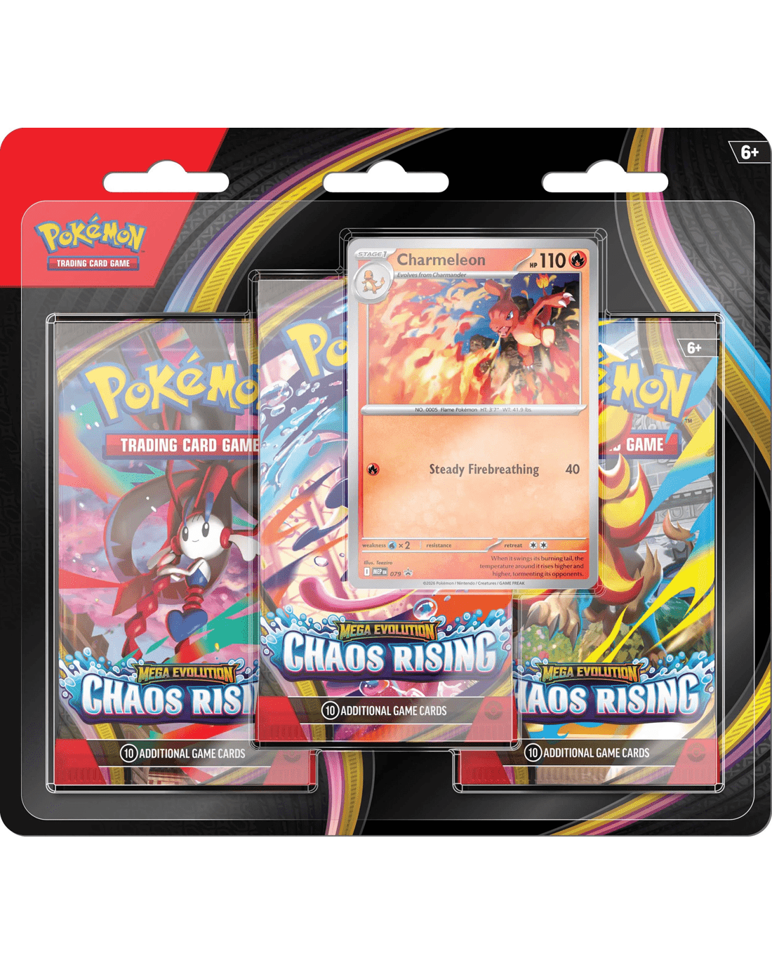 - Includes 3 x awesome booster packs from the new Mega Evolution-Chaos Rising expansion and 1 x special foil promo card!