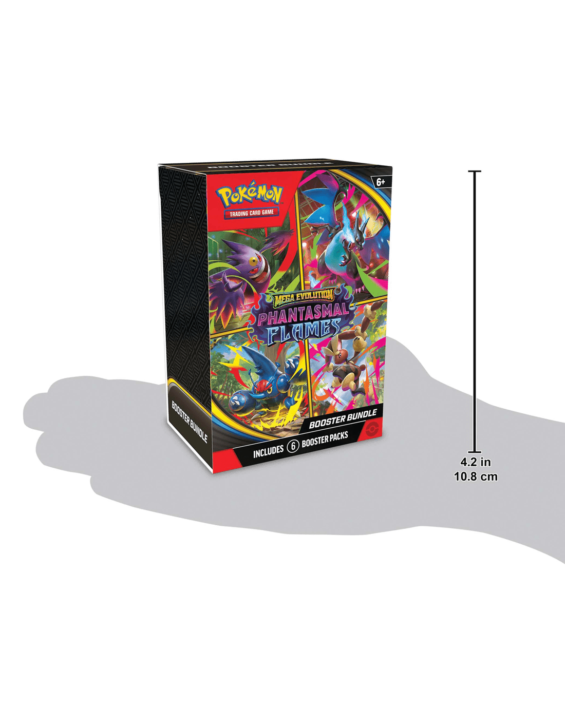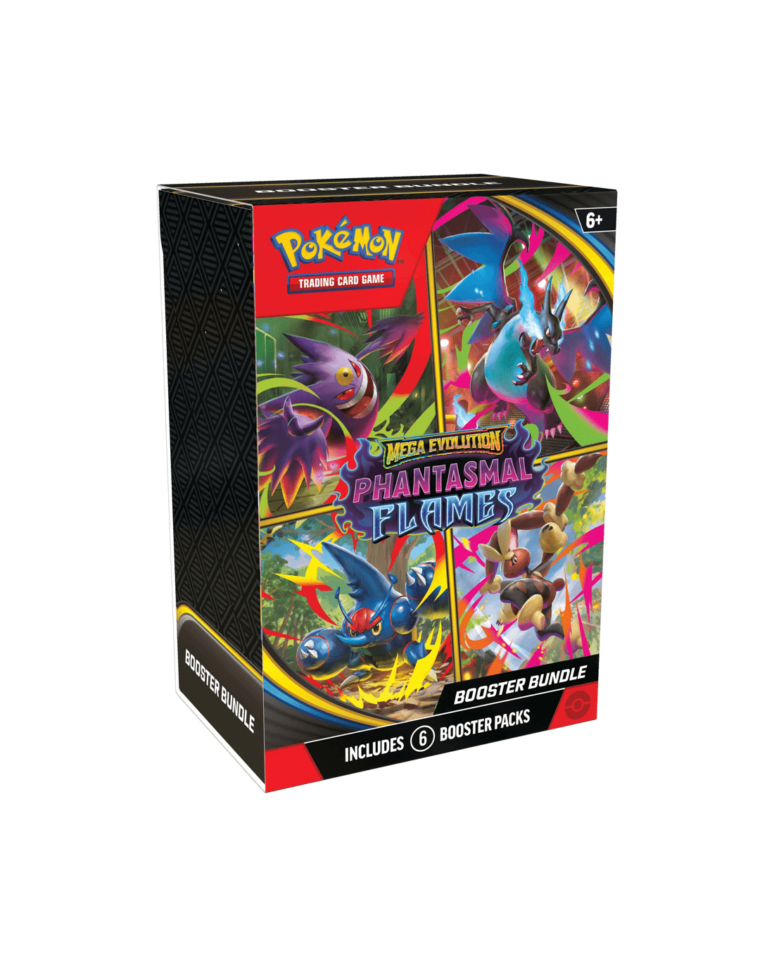 Expand your collection with this Booster Bundle containing six booster packs from Pokemon TCG: Mega Evolution - Phantasmal Flames!