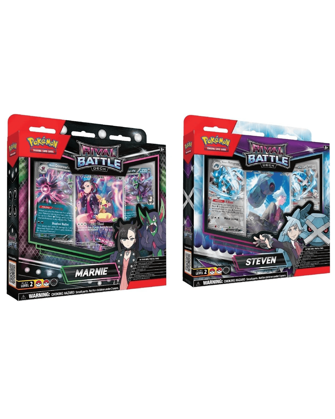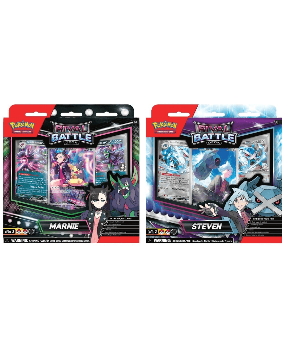 Two new Pokemon TCG: Rival Battle Decks are ready to rumble! Team up with Galar Gym Leader Marnie and her tough-fighting team, or call upon Hoenn Champion Steven and his heavy-metal Pokemon. Each deck includes two powerful Pokemon ex and everything you need to play right away.