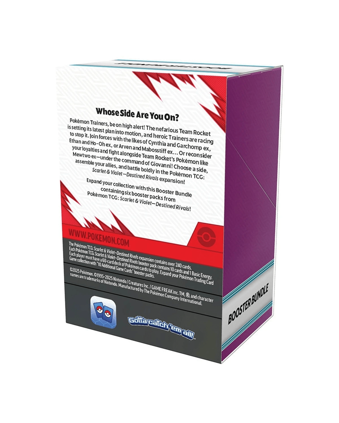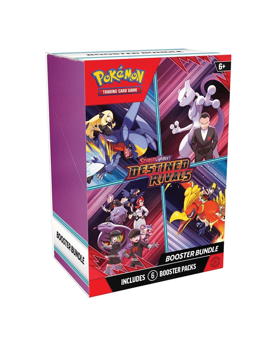 Pokemon Trainers, be on high alert! The nefarious Team Rocket is setting its latest plan into motion and heroic trainers are racing to stop it. Join forces with the likes of Cynthia and Garchomp ex, Ethan and Ho-Oh ex or Arven and Mabosstiff ex… Or reconsider your loyalties and fight alongside Team Rocket’s Pokemon like Mewtwo ex, under the command of Giovanni! Choose a side, assemble your allies and battle boldly in the Pokemon TCG: Scarlet and Violet - Destined Rivals expansion!