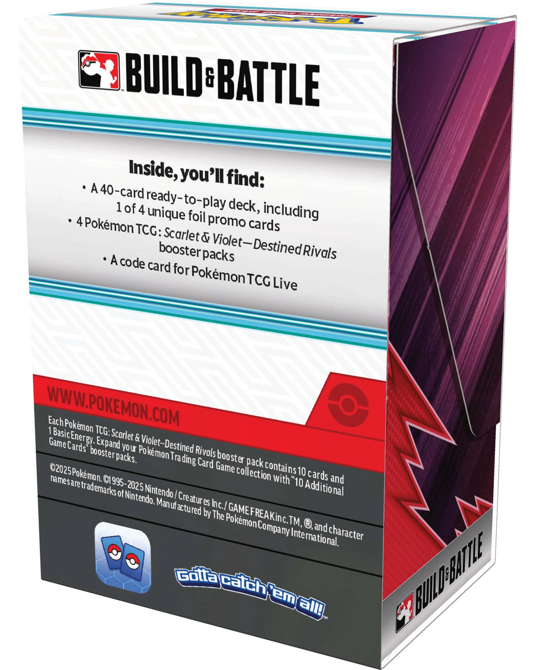 - Includes 1 x 40-card ready-to-play deck (including 1 of 4 unique foil promo cards), 4 x Pokemon TCG: Scarlet and Violet - Destined Rivals booster packs and 1 x code card for Pokemon TCG Live