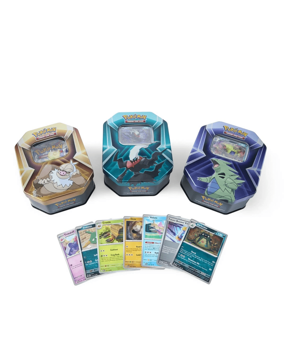 - Includes 1 x set of 3 foil cards: either Larvitar, Pupitar and Tyranitar; Sableye, Spiritomb and Darkrai; or Slakoth, Vigoroth and Slaking, 3 x Pokemon Trading Card Game booster packs and 1 x code card for Pokemon Trading Card Game Live
