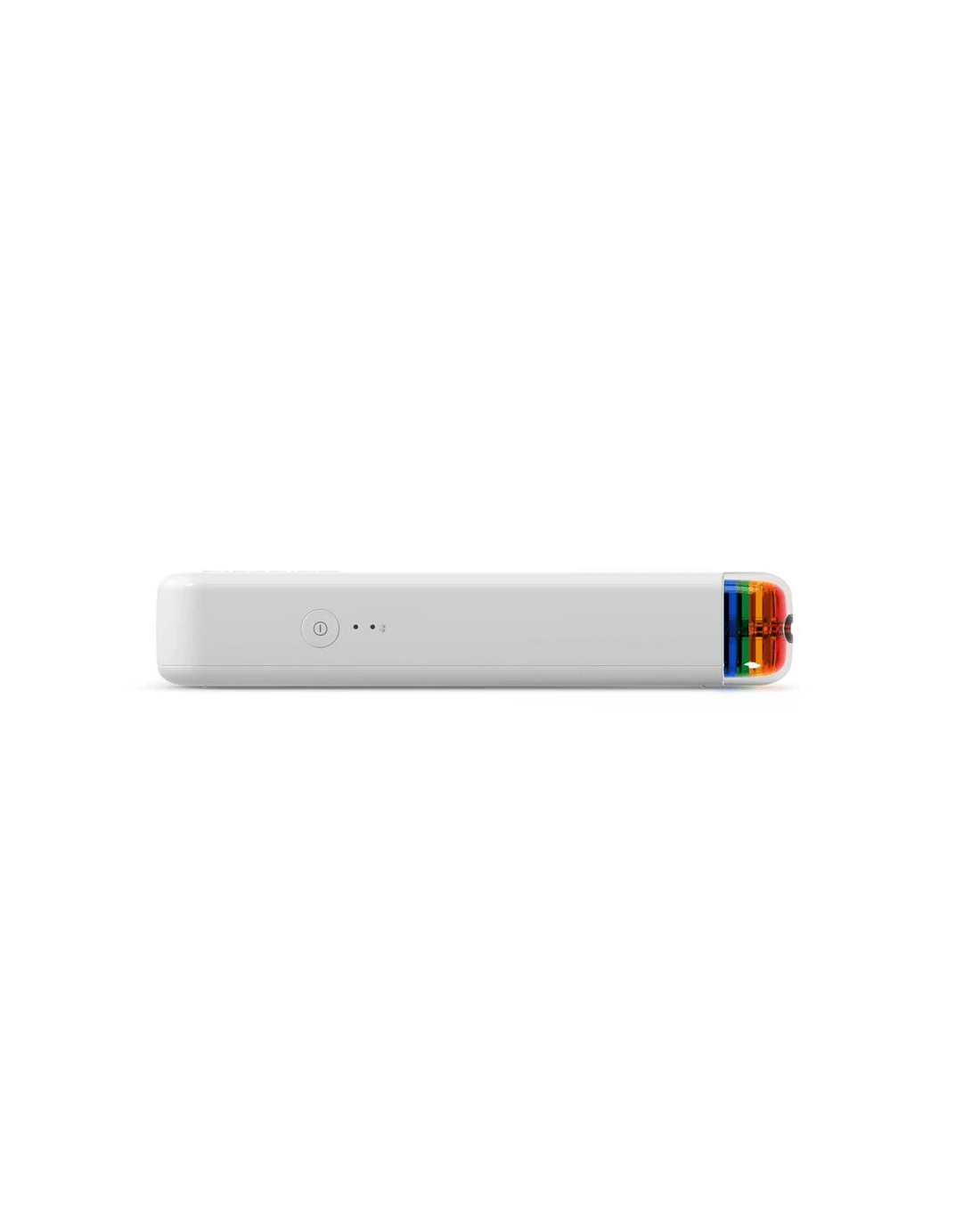 - The exterior is white with a classic polaroid rainbow strip down the top camera.