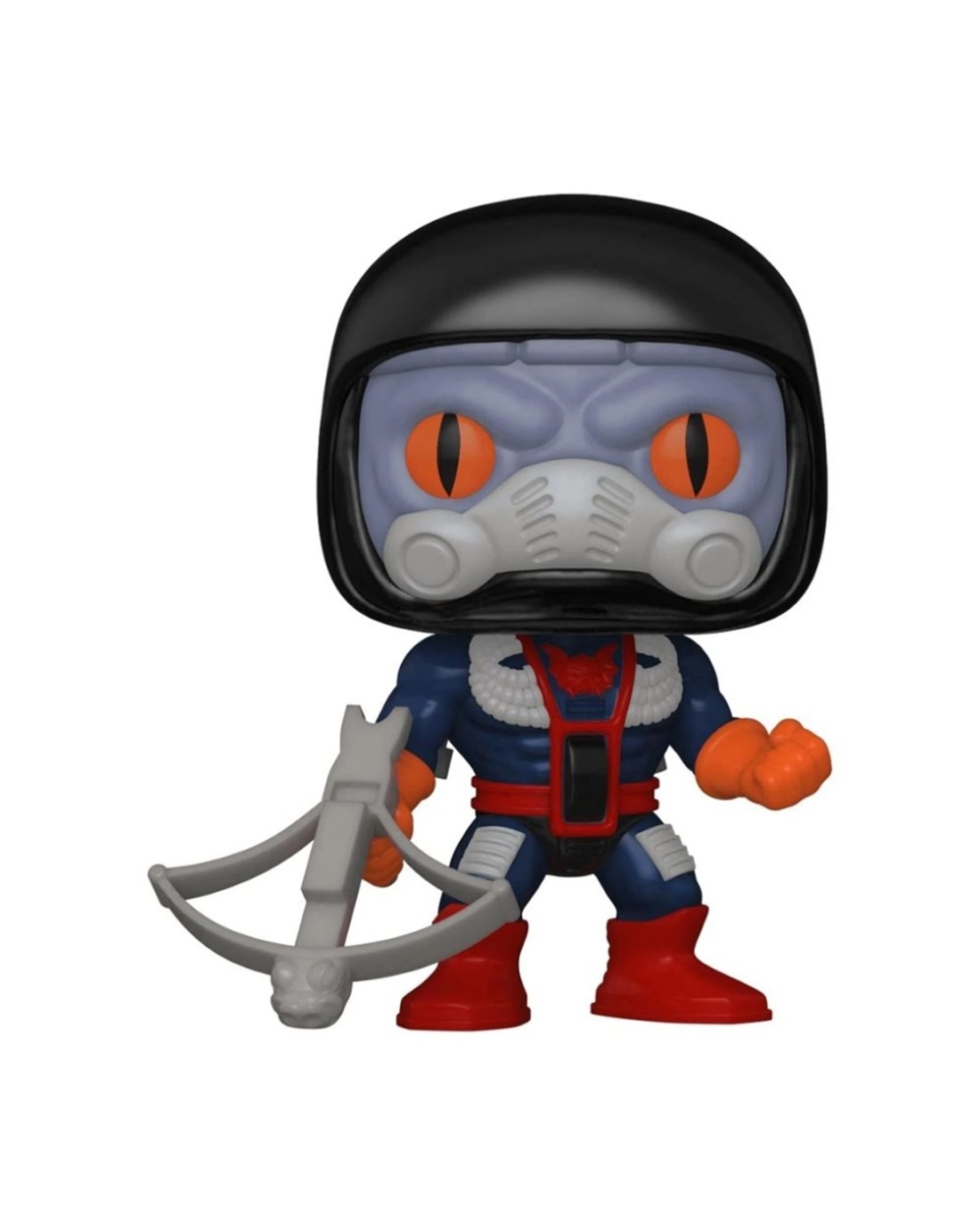 Standing approximately 10cm tall, this figure is made of durable plastic vinyl and features a character with a stylised large head, exaggerated facial features, a clear domed face shield, and an intricate costume design. It includes a grey weapon for display and play options, making it a great choice for fans and collectors alike.