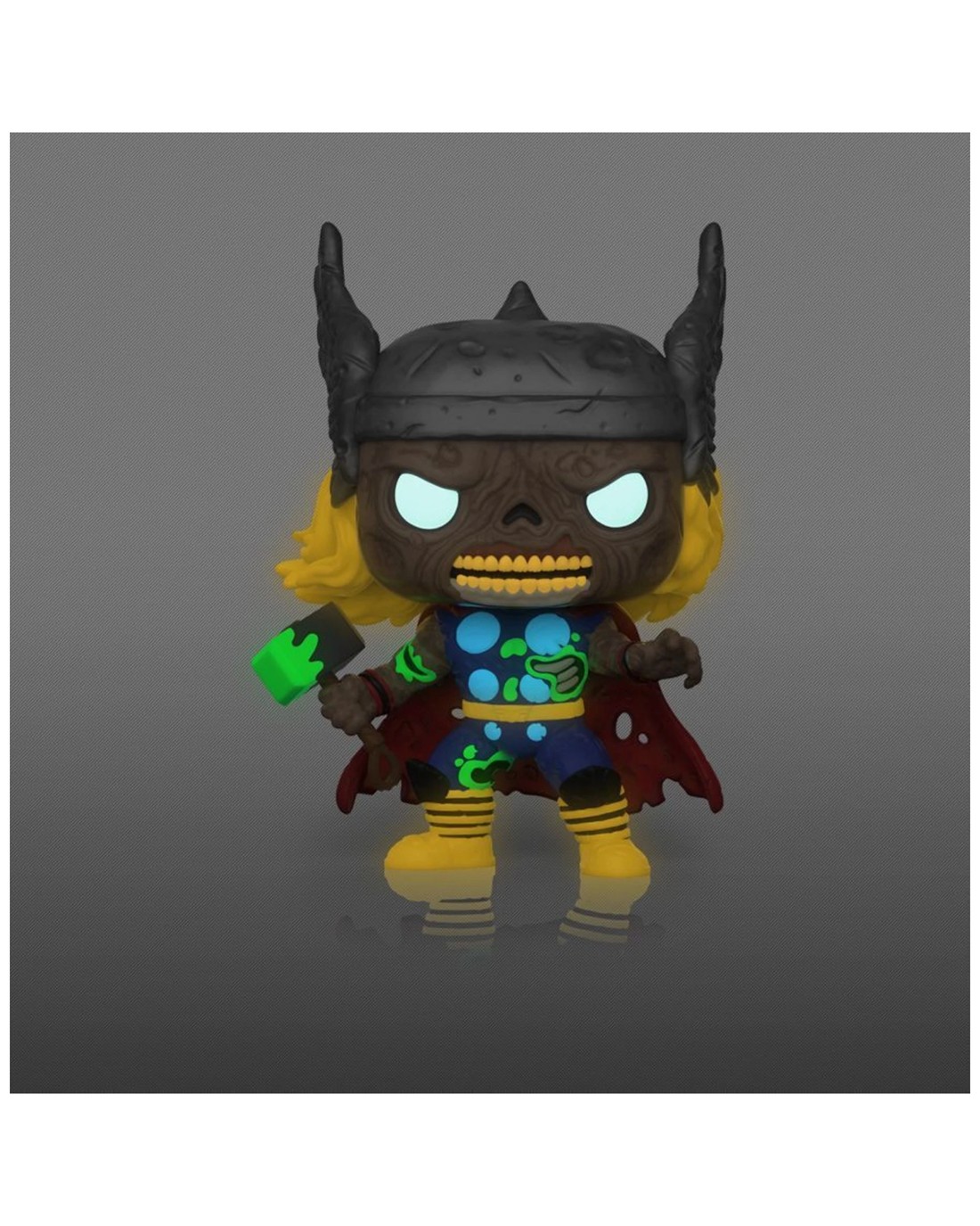 The POP! Collectables Marvel Zombies Thor Glow RS is a detailed vinyl figurine designed for fans and collectors of pop culture and superhero memorabilia. With a fierce warrior appearance and exceptional craftsmanship, this figure brings the comic character to life in a collectible form suitable for display and admiration.