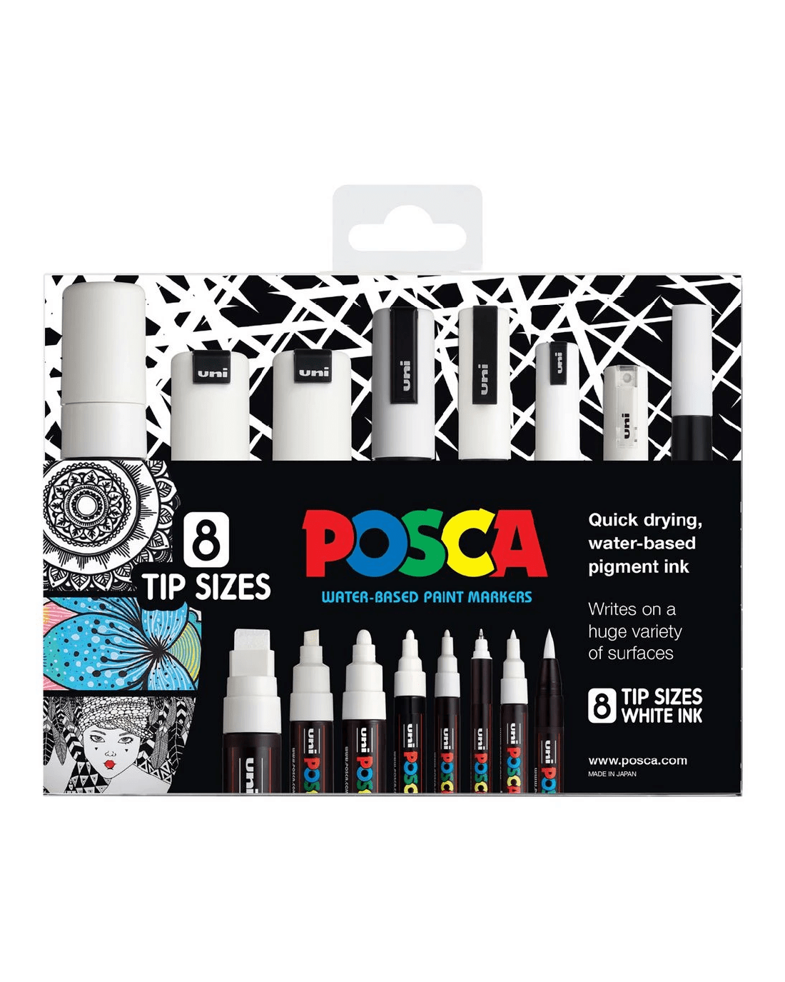 POSCA Paint Markers Assorted Tip Sizes White 8 Pack