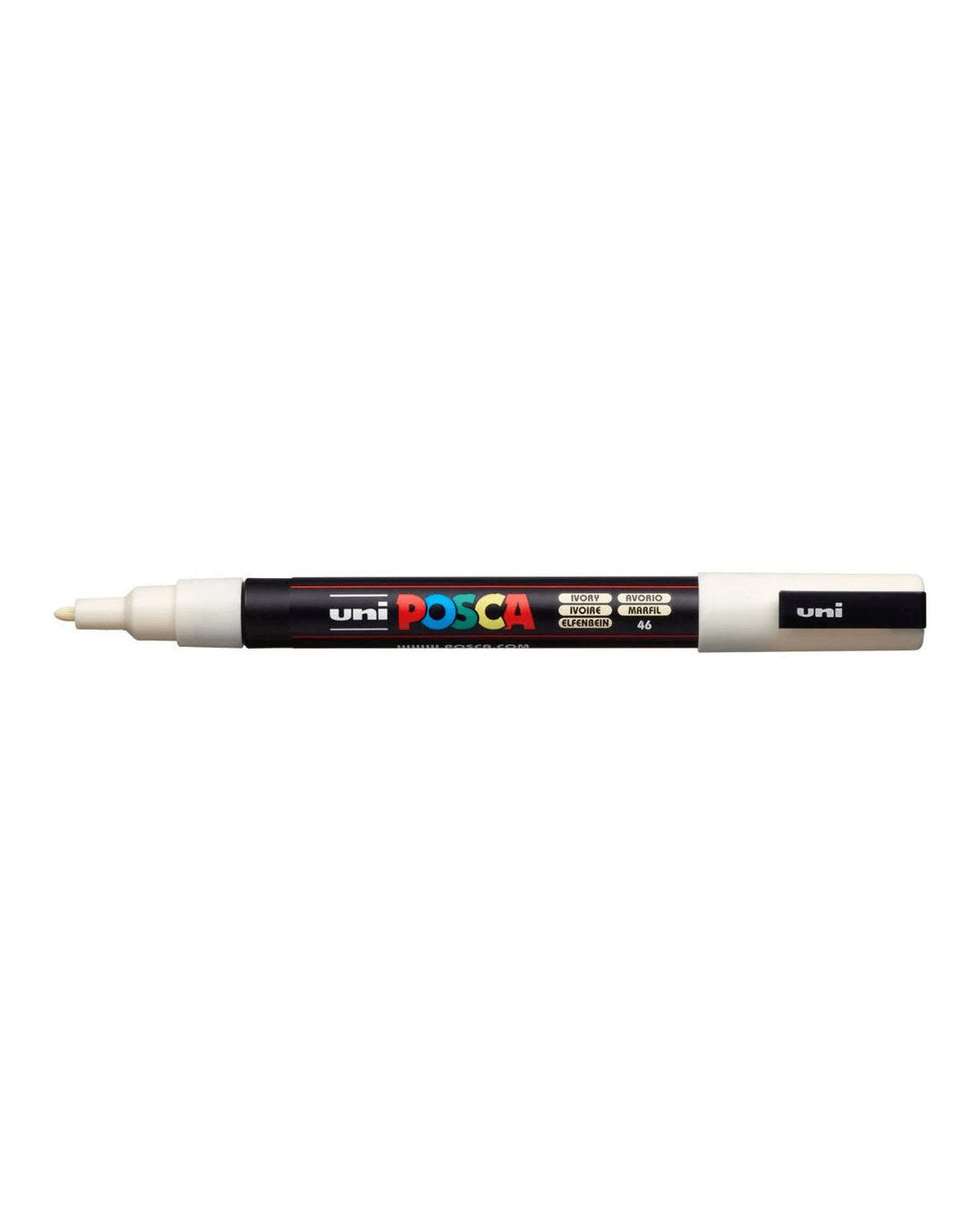 This POSCA PC-3M Poster Marker has water-based pigments which can be blended when wet or overlaid when dry. It has a fine bullet tip which lets you draw lines that can be read from a distance. The ink produces opaque results that won't fade over time.