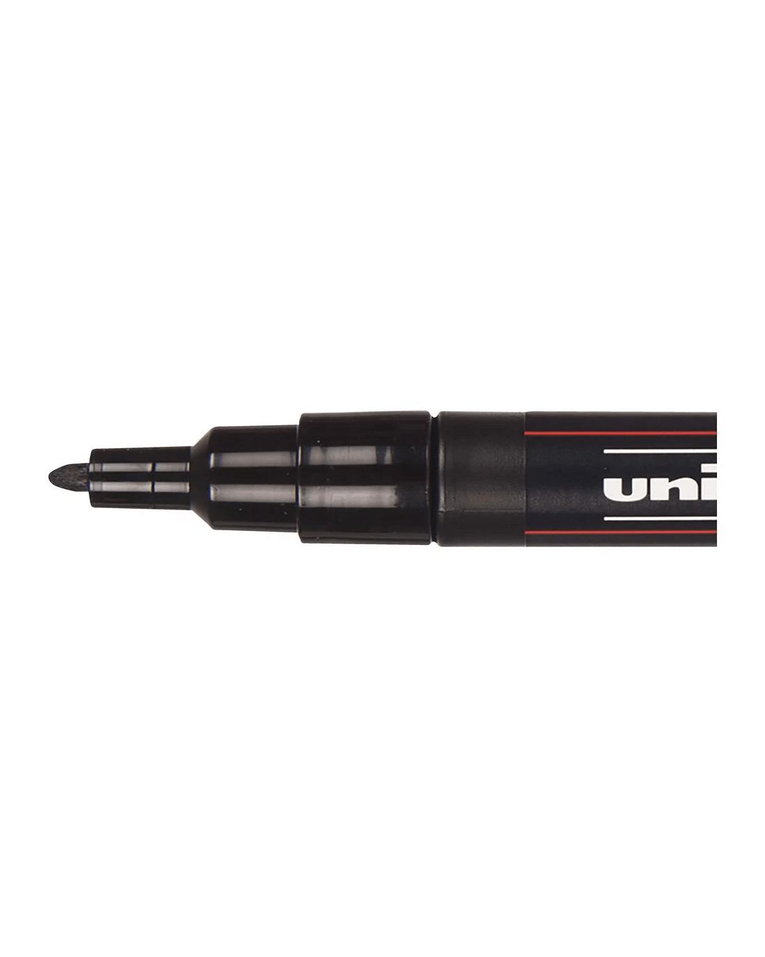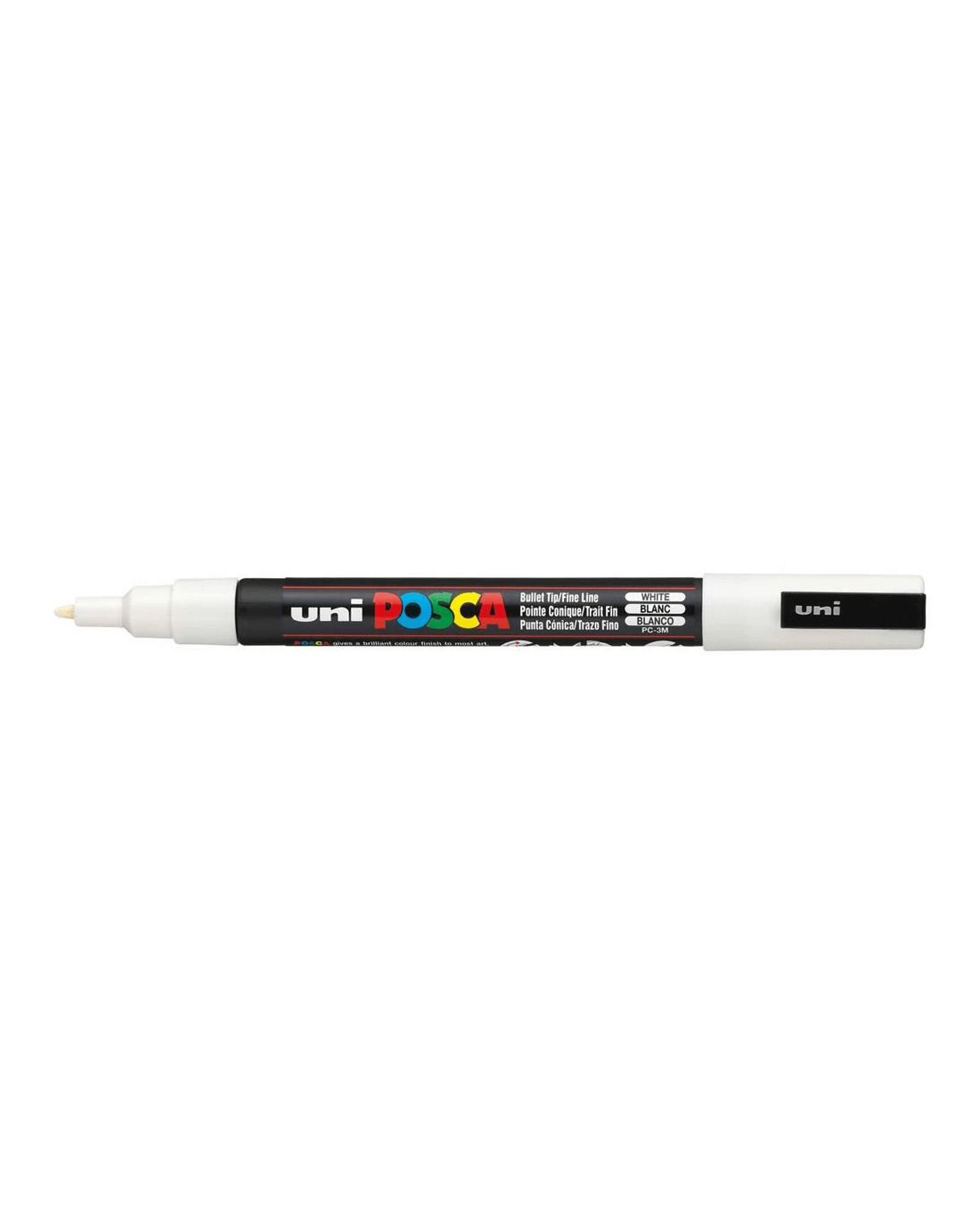 This POSCA PC-3M Poster Marker has water-based pigments which can be blended when wet or overlaid when dry. It has a fine bullet tip which lets you draw lines that can be read from a distance. The ink produces opaque results that won't fade over time.