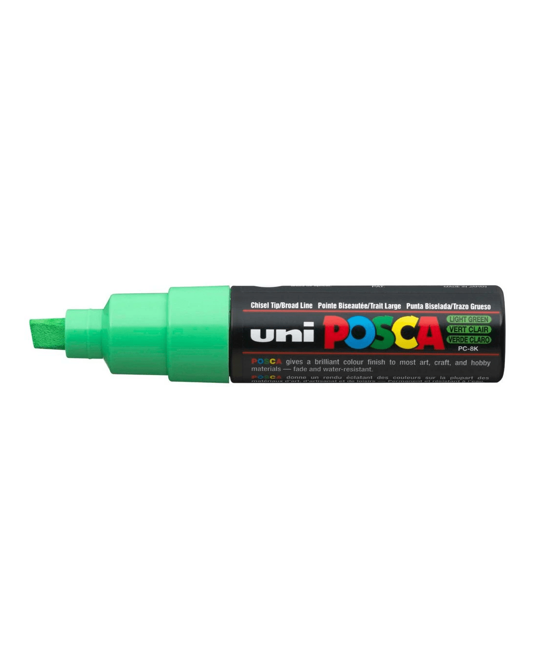 This POSCA PC-8K Poster Marker has water-based pigments which can be blended when wet or overlaid when dry. They have a chisel tip which can produce thin lines on the point and thick, 8.0 mm lines on the side. The ink will come out opaque every time and will not fade over time.