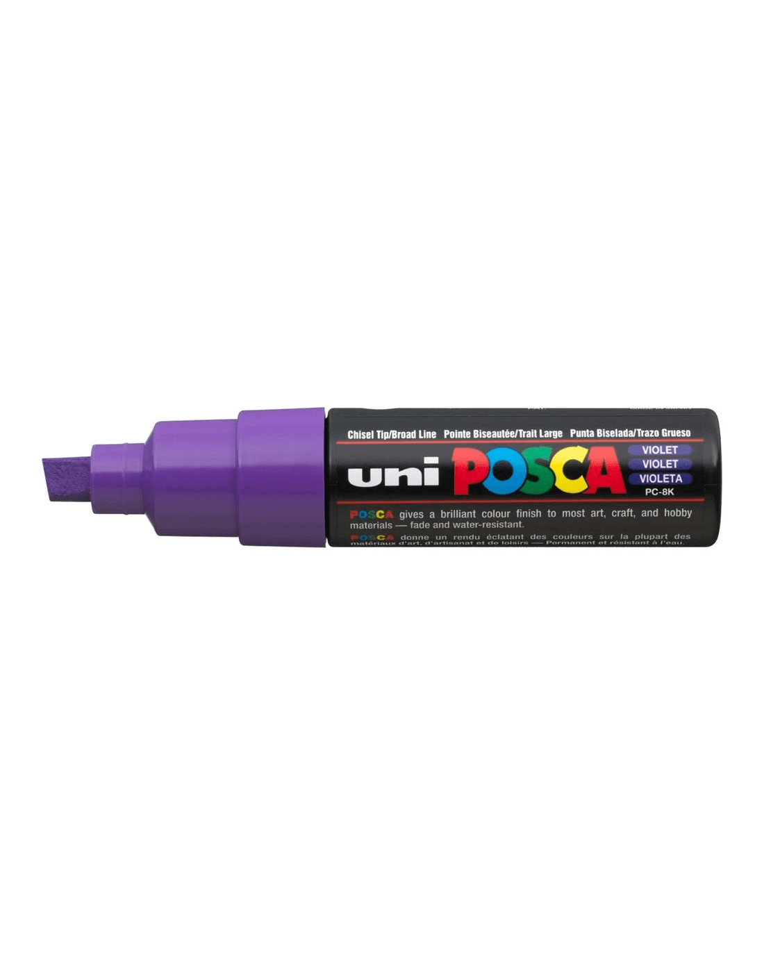 This POSCA PC-8K Poster Marker has water-based pigments which can be blended when wet or overlaid when dry. It has a chisel tip to produce thin lines on the point and thick, 8.0 mm lines on the side. Plus, it can be used on a variety of surfaces making it a versatile writing utensil.