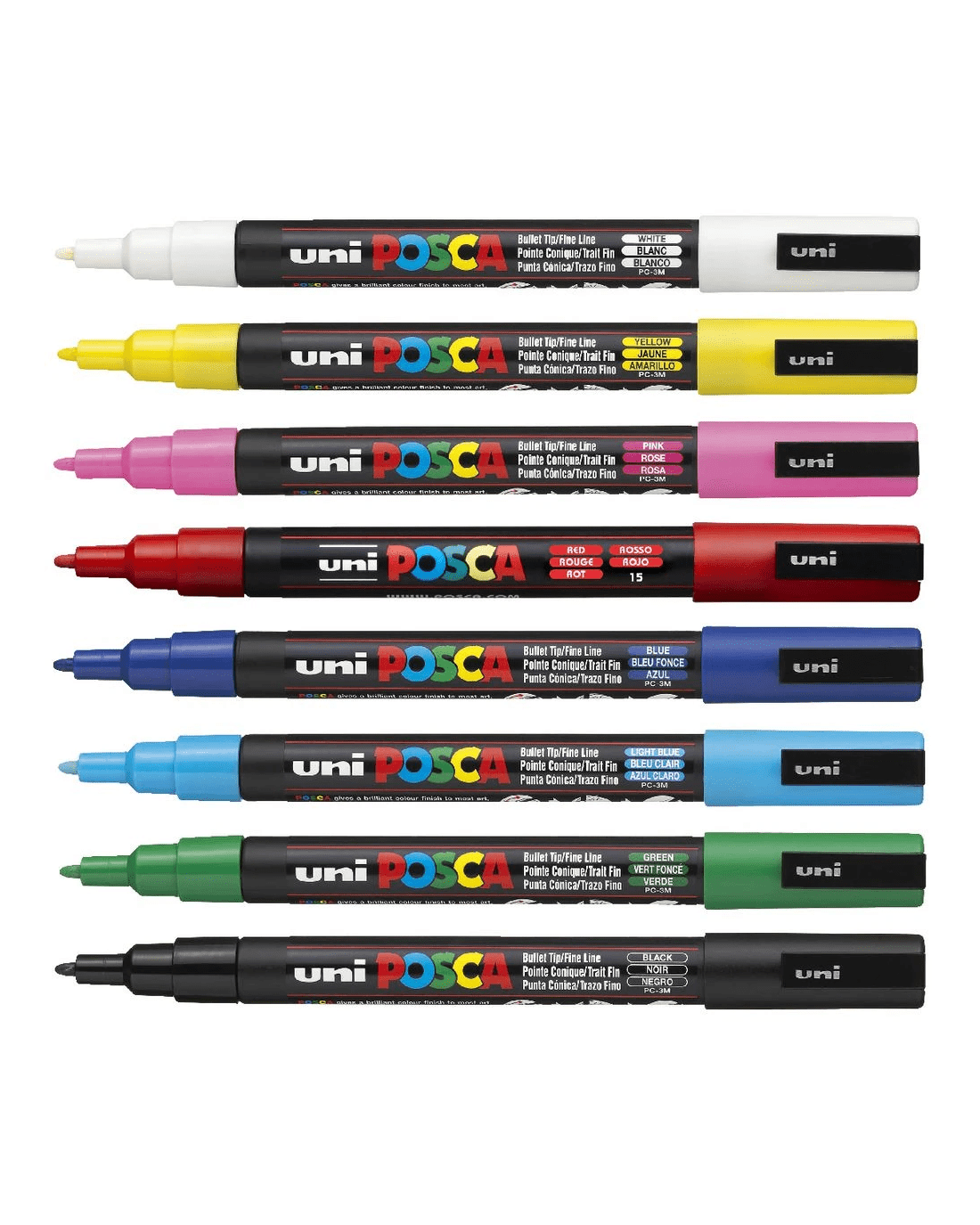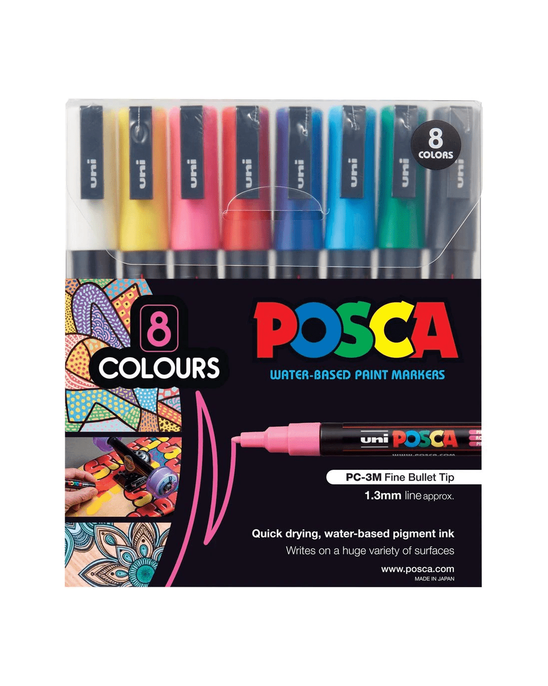 - Please refer to the “Posca Markers Product Information Brochure” (attached below) for further information on the various Posca nib sizes, colour options across each nib size, information on the various surfaces Poscas will work on, as well as some inspiration for your work.