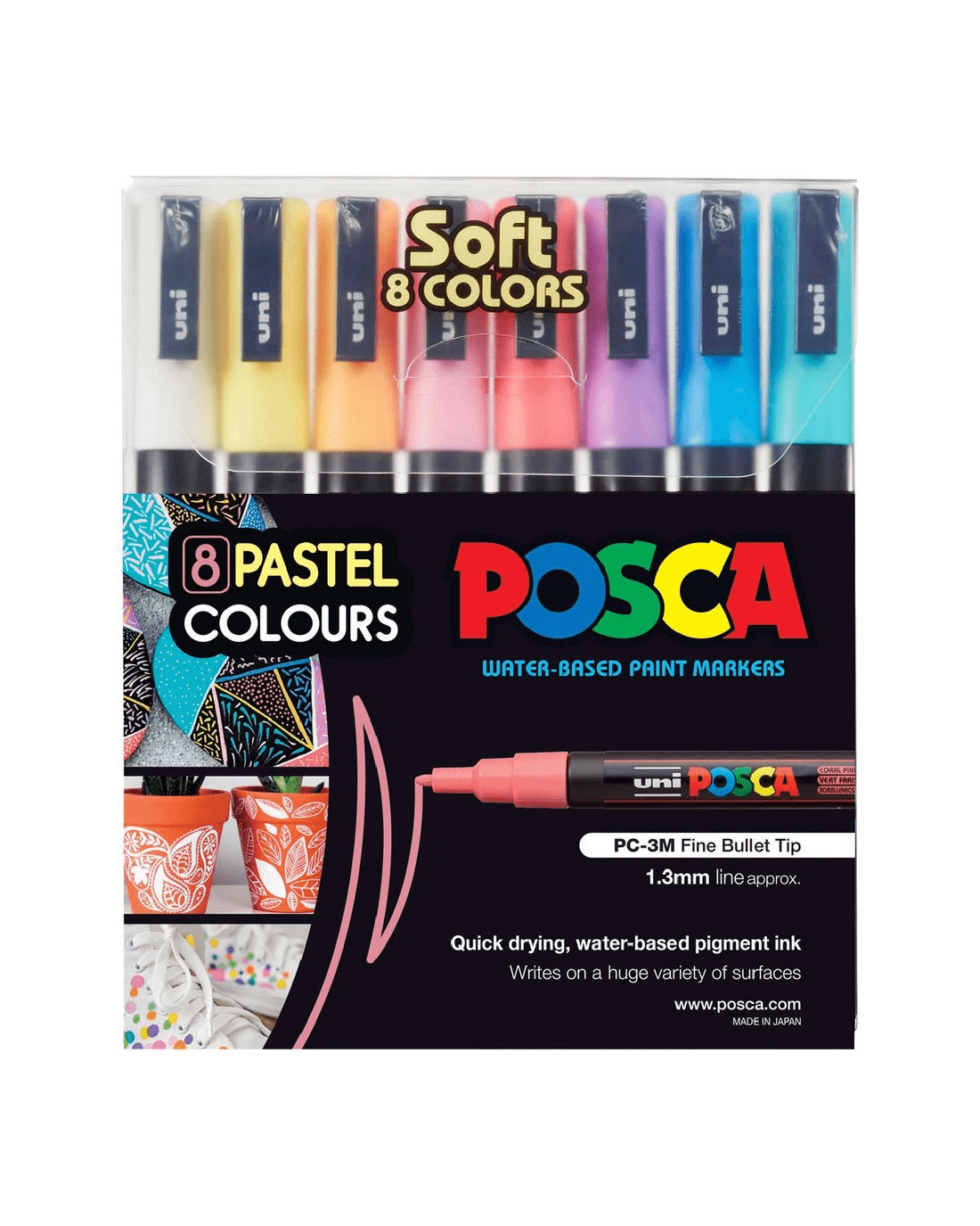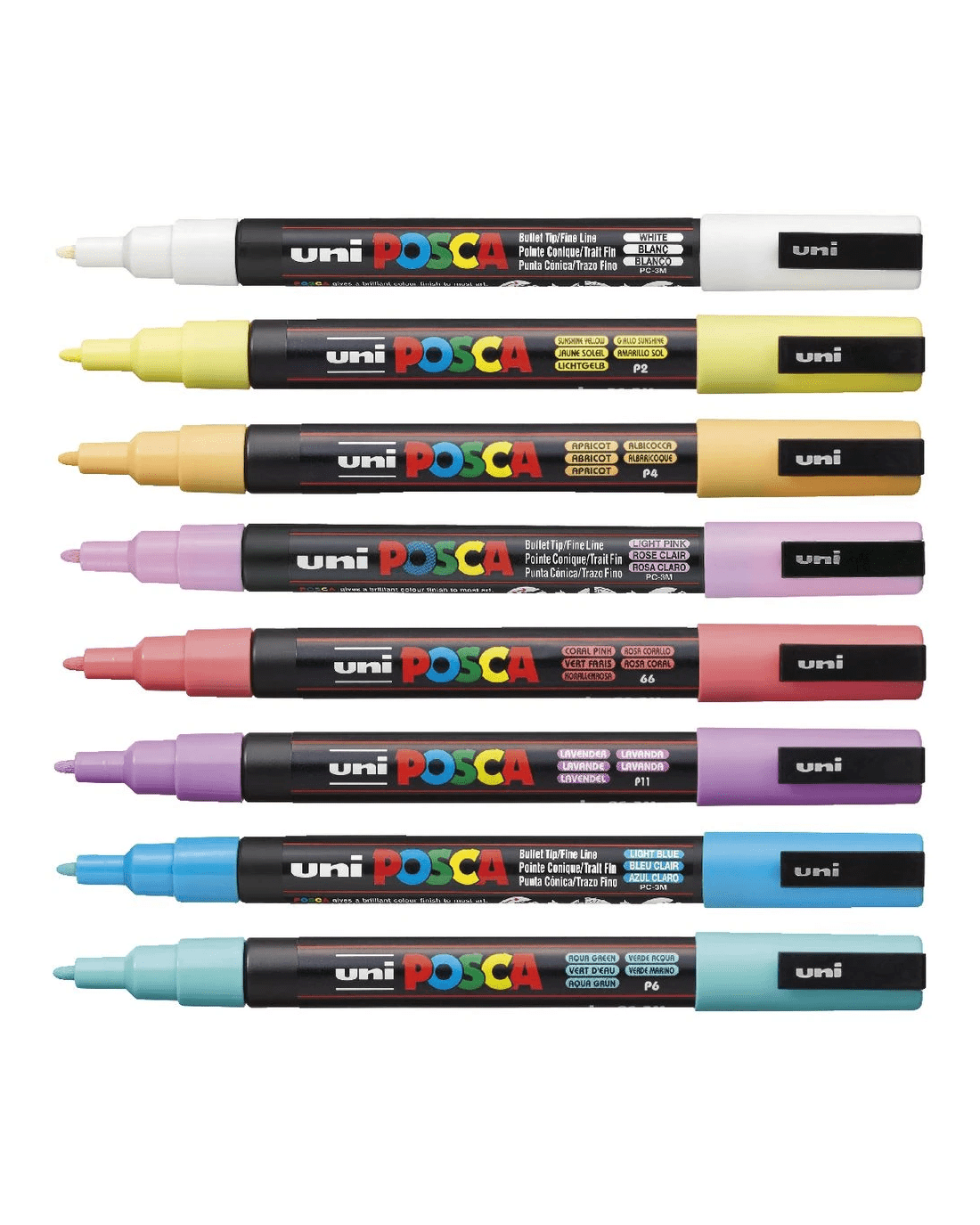 - Please refer to the “Posca Markers Product Information Brochure” (attached below) for further information on the various Posca nib sizes, colour options across each nib size, information on the various surfaces Poscas will work on, as well as some inspiration for your work.