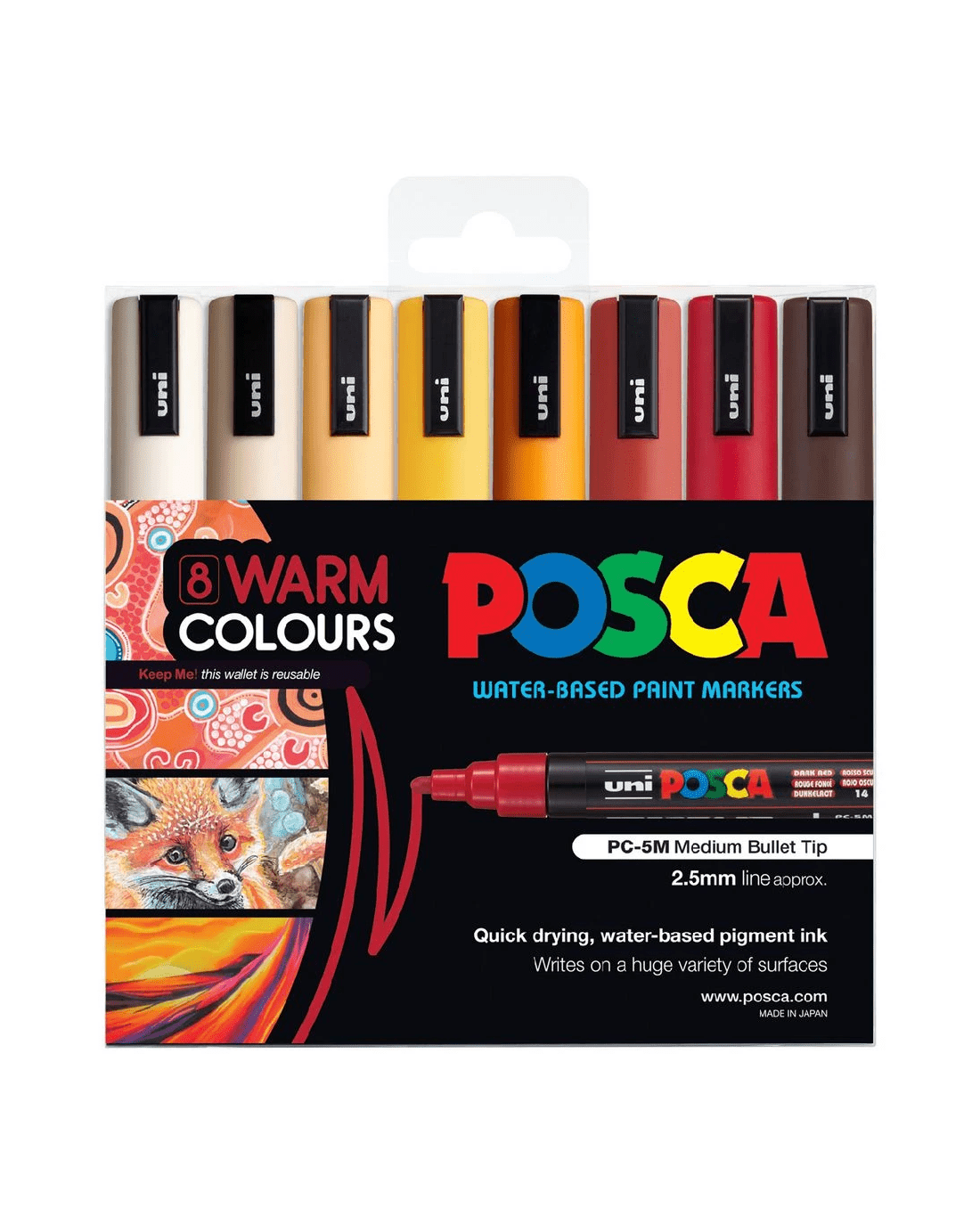 POSCA PC5M Paint Markers Warm Colours 8 Pack