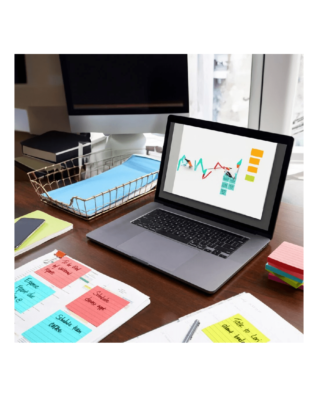 - The pack contains an assortment of colours from the Post-it Poptimistic collection so you can easily colour code your reminders.