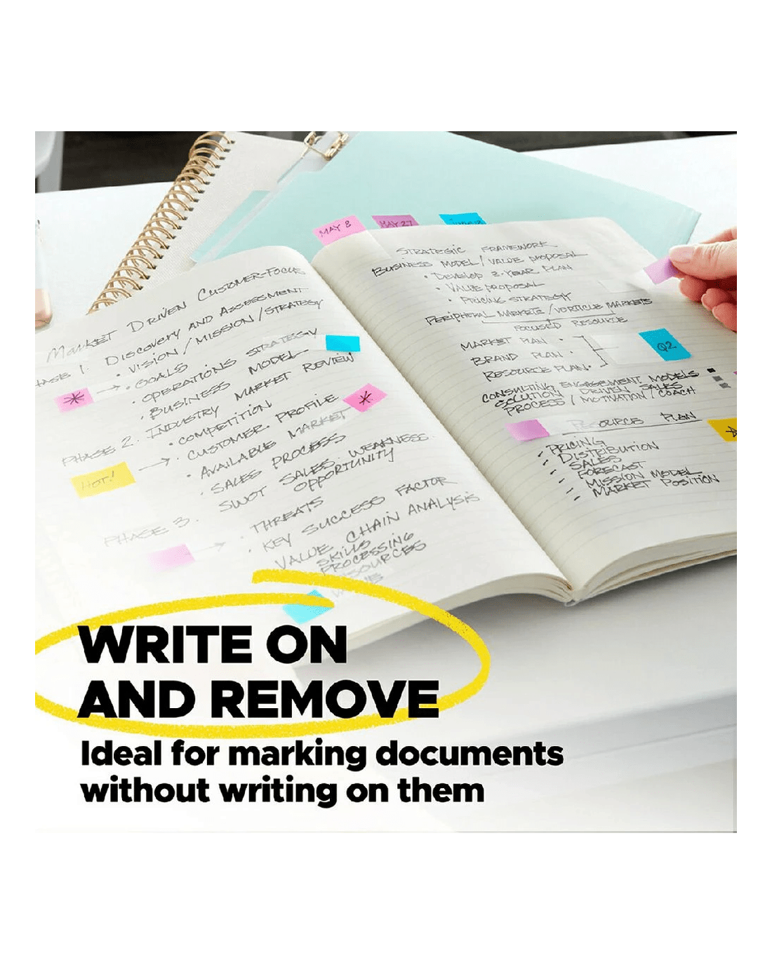 These Post-it Mini Flags are a simple and easy way to colour code your documents, tab or mark pages in documents or highlighting text without leaving marks. The brightly coloured flags can be placed on the page and removed without leaving a mark or stick residue. These flags come in a dispenser so you can easily grab one tag at a time.