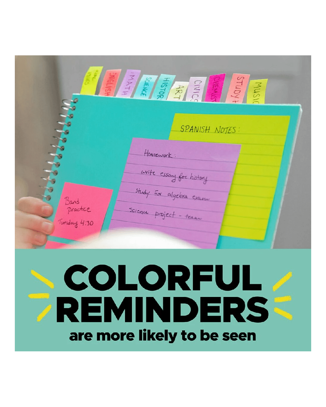 - The fluoro colours are perfect for marking, tagging and colour coding important pages and information.