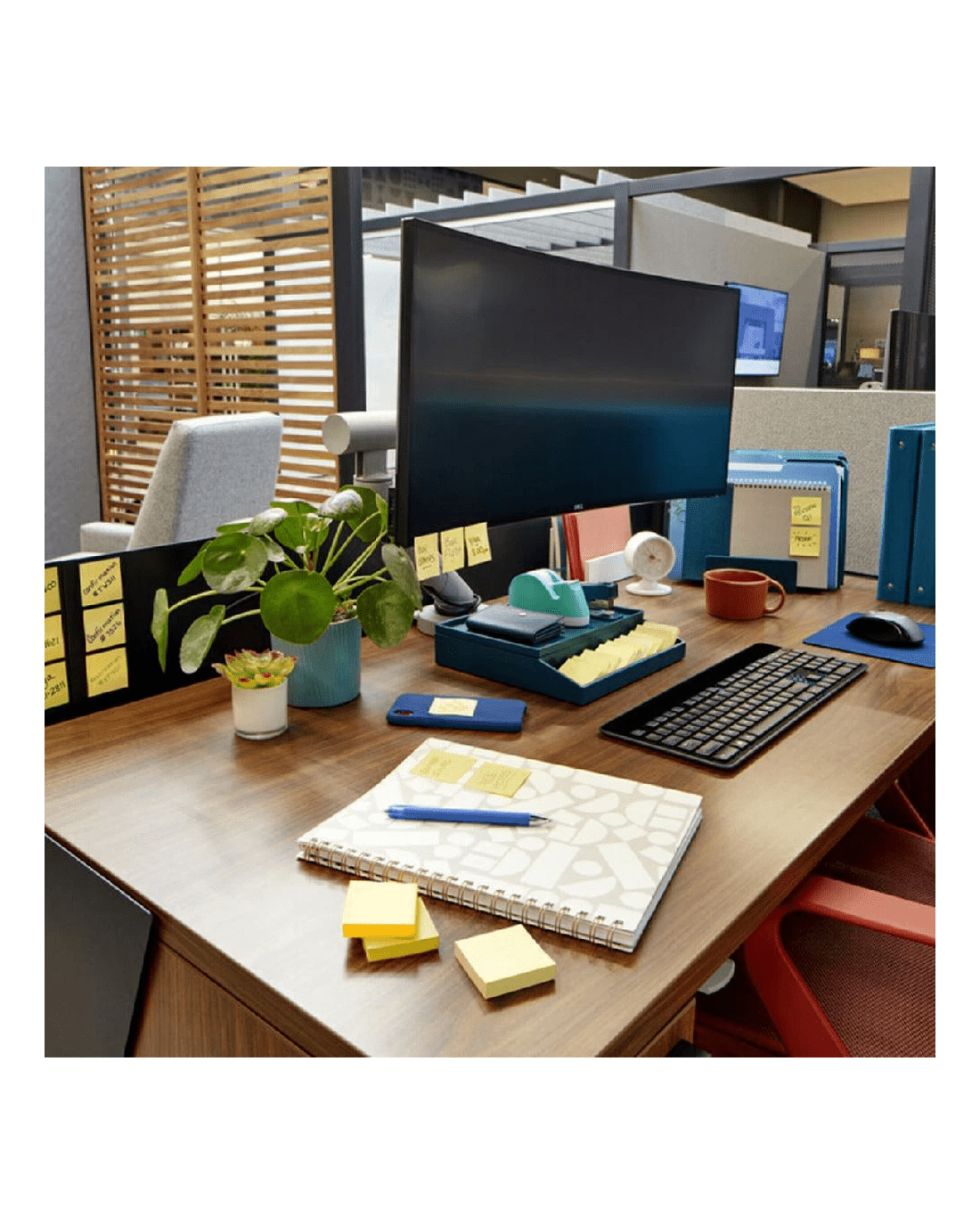- Each note has an adhesive backing to stick securely to surfaces such as monitors, doors and walls.