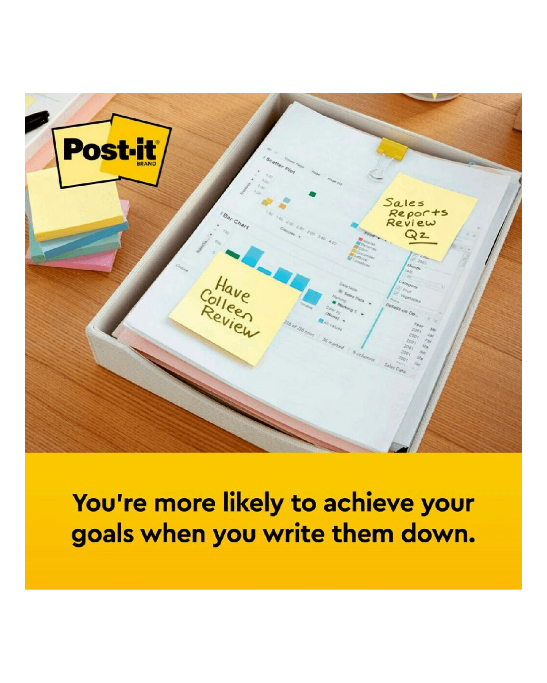 - Post-it Super Sticky Notes stick and re-stick so your thoughts get noticed and have 2X the sticking power.