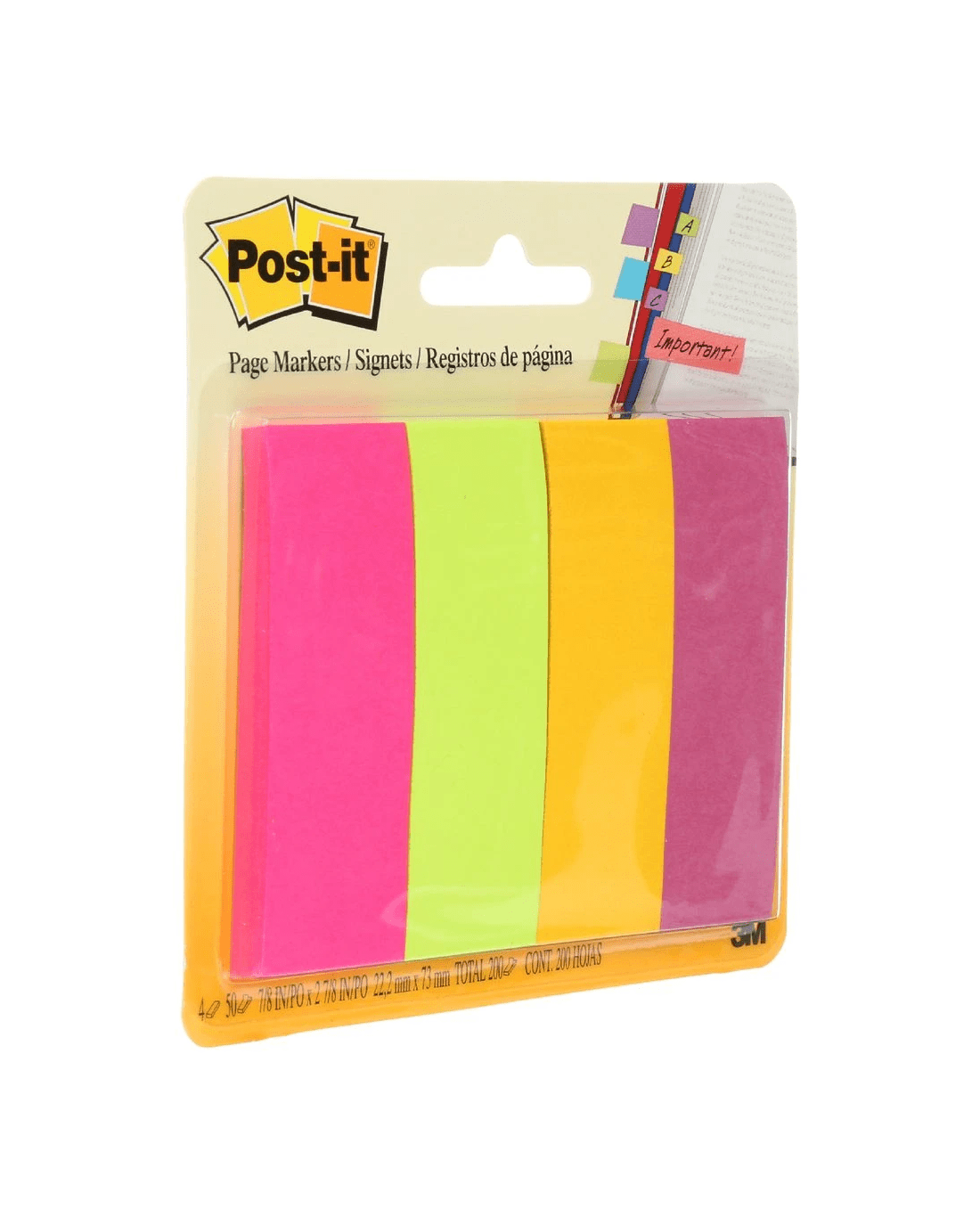 These Post-it Page Markers offer an easy way to mark pages and documents, helping you add notes or to find important information.The colourful tabs have a writable surface which allows you to take notes and not mark the book or document.