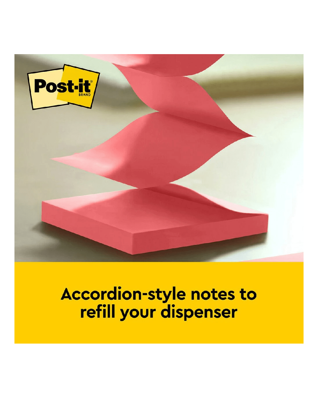 Post-it Notes are great for taking down phone numbers, writing quick reminders and even leaving short notes around your workspace. These bright, vibrant notes have a long lasting self-adhesive backing which removes without leaving any sticky residue behind. The notes are accordion style folded so they can easily be dispensed in a Post-it Note dispenser or used by themselves.