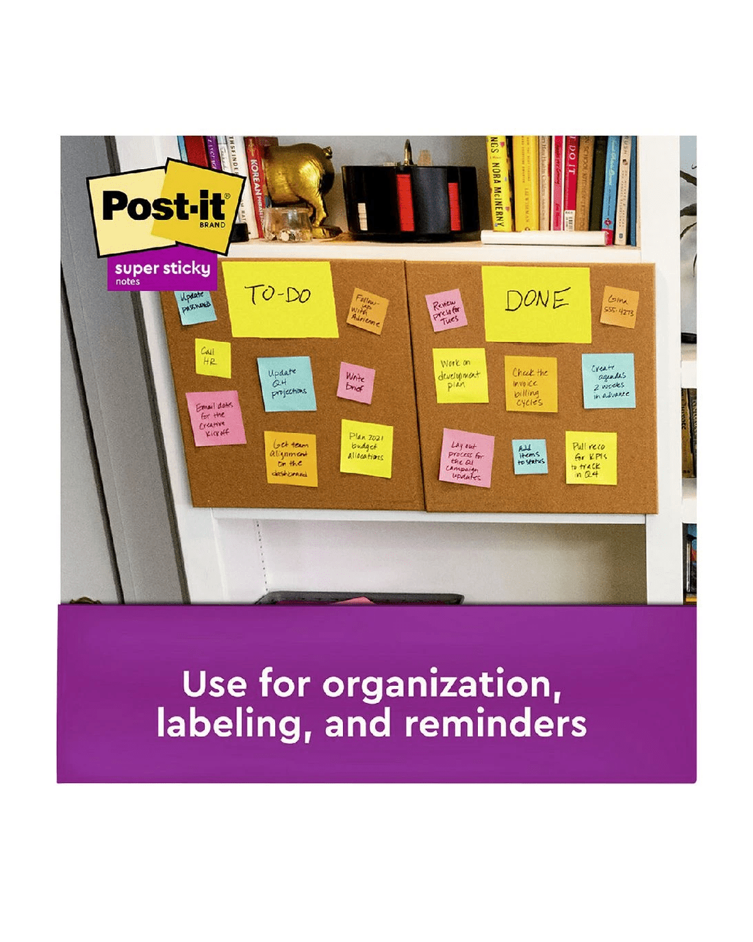 Post-it Super Sticky Notes are an easy way of leaving yourself reminders, to do lists and more. Each sheet has an extra strong, self-adhesive backing which will stick to almost any surface and remove easily when you're done.