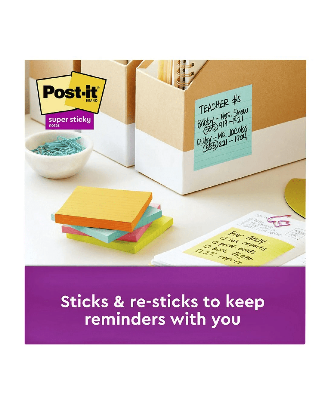 These Post-it Notes are lined which makes them perfect for writing to-do lists, reminders, notes and more. They feature super sticky adhesive so you can leave them on a wide range of surface types, ensuring that they'll be seen.