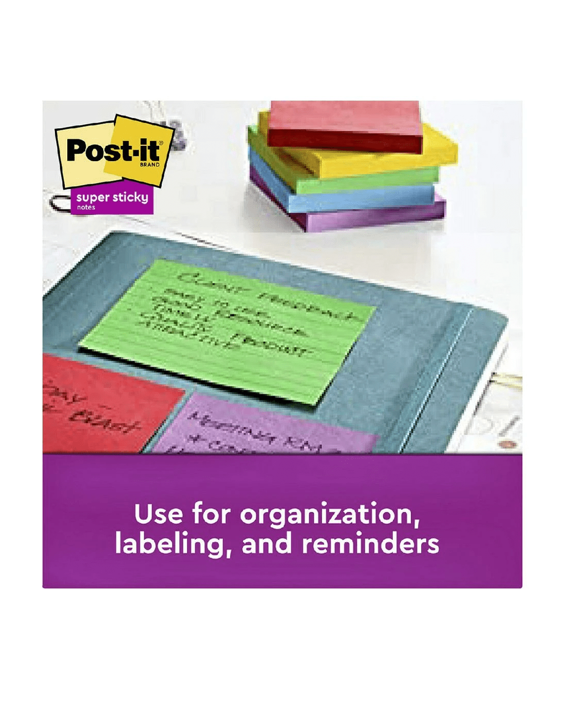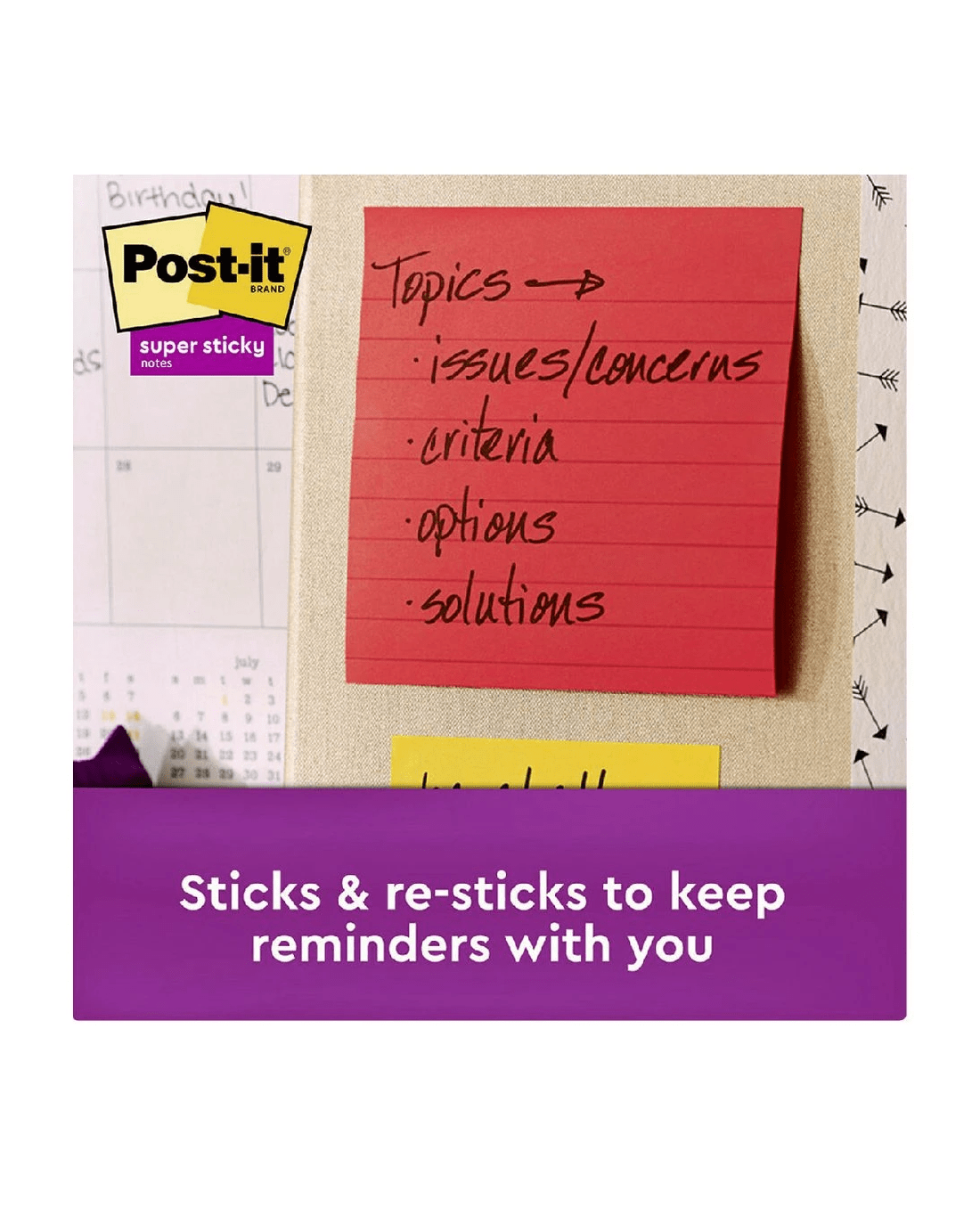 - Post-it Super Sticky Notes stick and re-stick so your thoughts get noticed and have 2X the sticking power.
