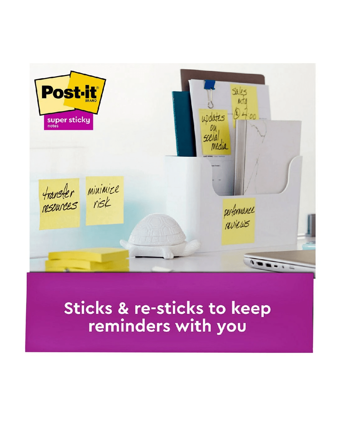 - Post-it Super Sticky Notes stick and re-stick so your thoughts get noticed and have 2X the sticking power.